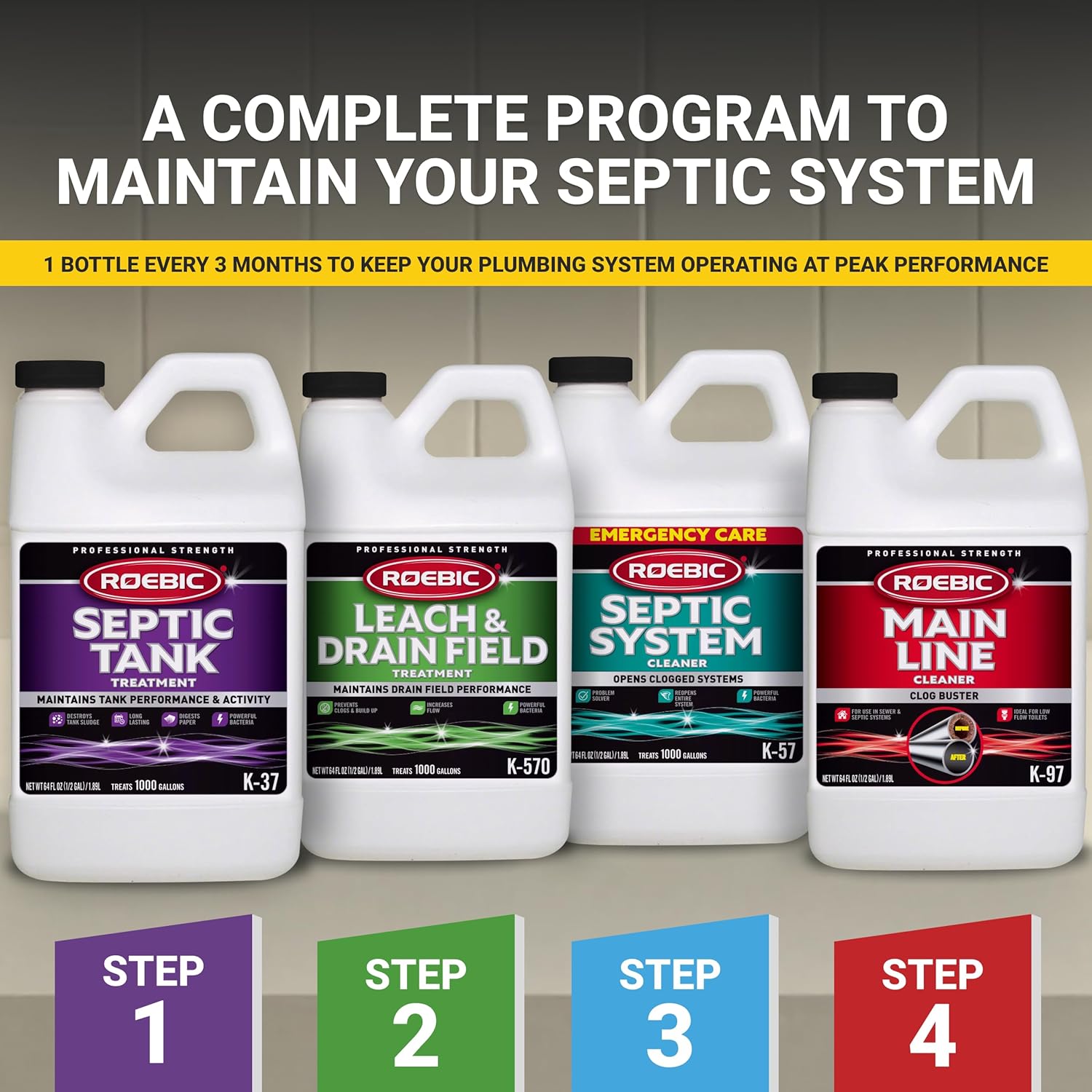 - MAIN LINE CLEANER: Tackle troublesome clogs and buildups with our Roebic Main Line Cleaner! Sewage and other debris tend to accumulate in both sewer lines and main lines leading to septic tanks, which can be a common problem in both new and old homes. Our main line enzyme cleaner is used for attacking this accumulated debris to quickly restore proper flow to your sewer lines or septic system