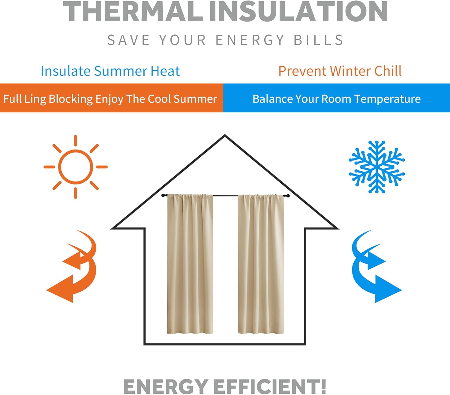 - ENERGY SMART - Thermal property of the blackout curtains ensure that the room temperature is regulated. Protect your indoor furniture from directly exposing to the sun.