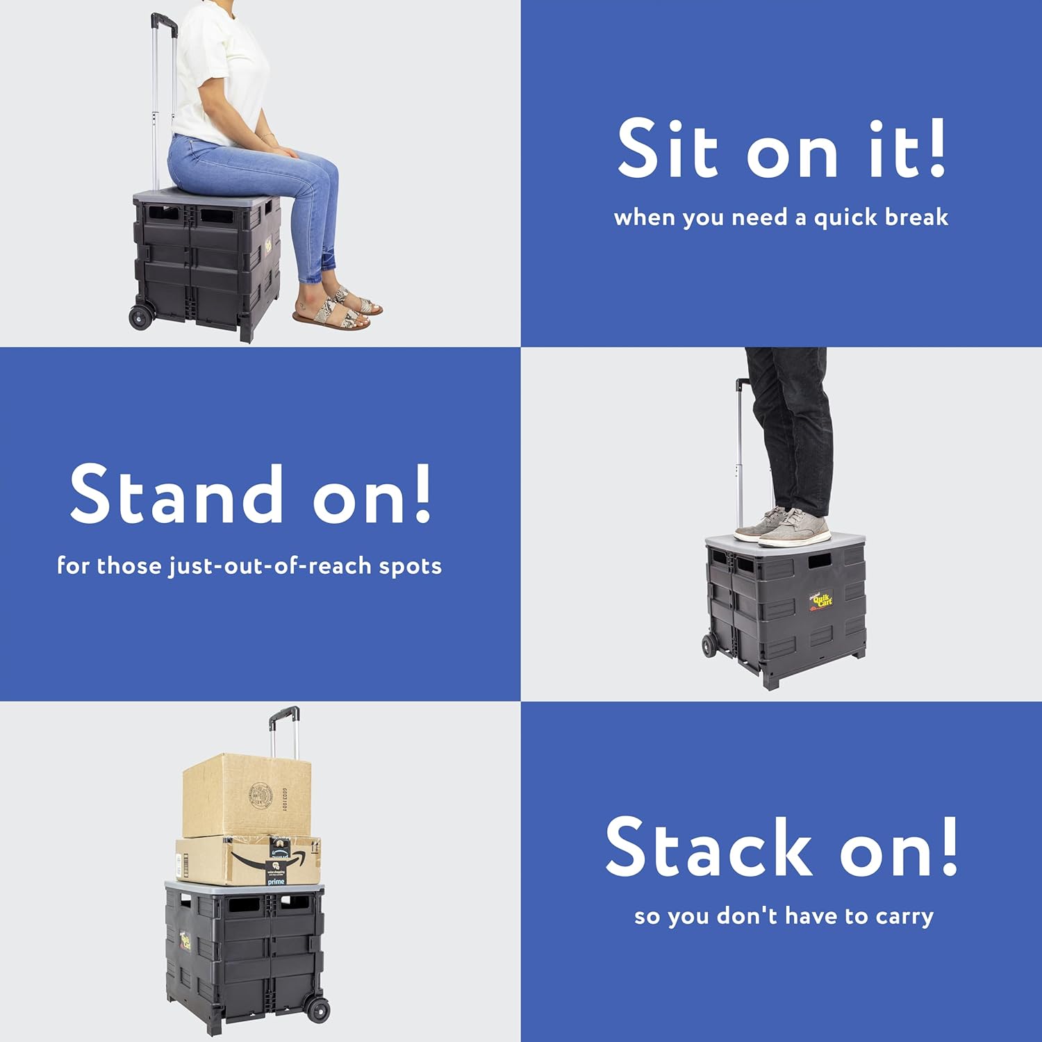 - Folds down to only 3-inches thick for compact storage weighs less than 8-pounds. ideal for groceries, milk Rolling totes, pull cart and plastic crate are ideal file organizers, rolling utility cart.