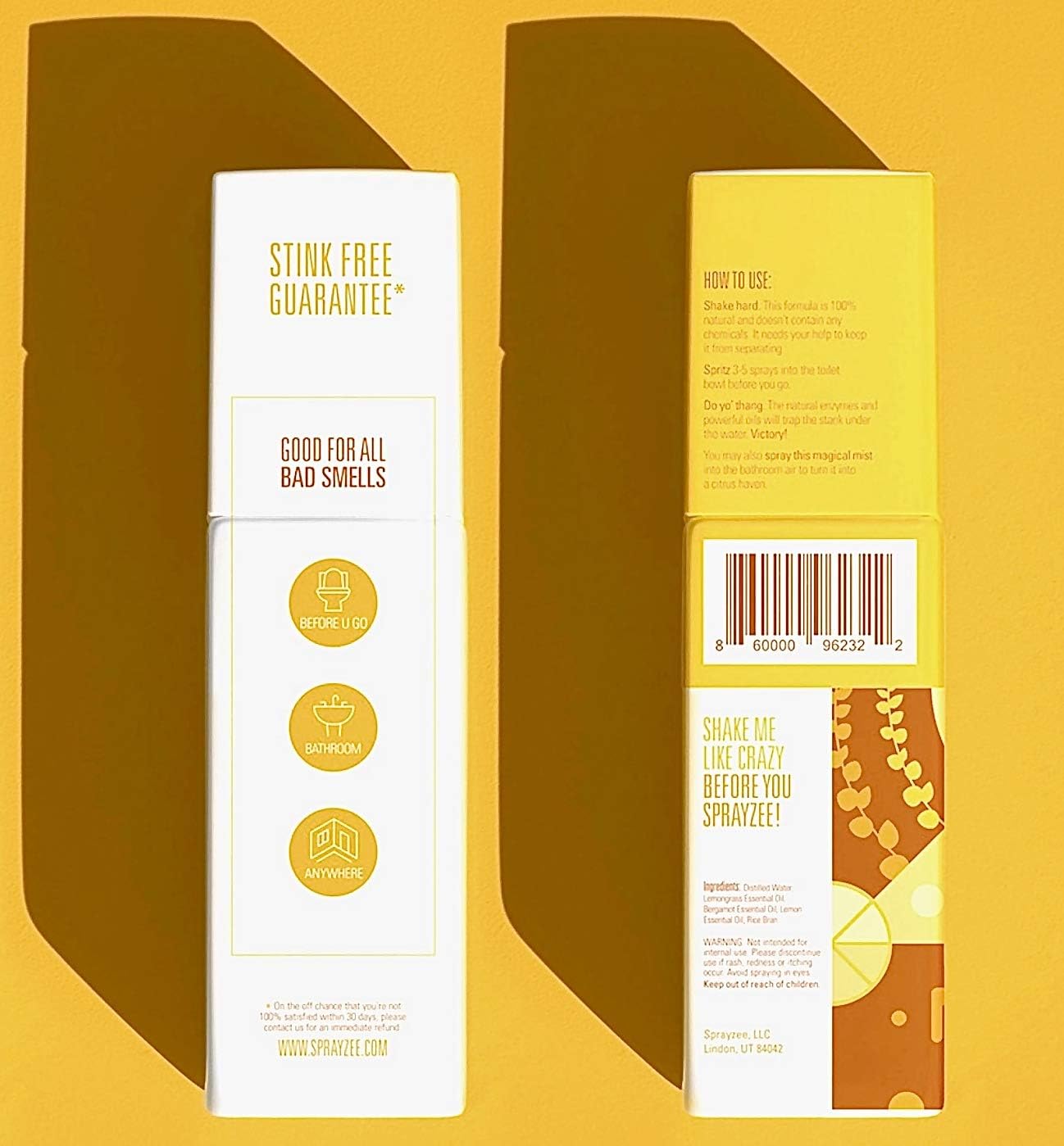 - 🚽 𝗧𝗿𝗮𝗽 𝗔𝗟𝗟 𝗧𝗵𝗲 𝗦𝘁𝗮𝗻𝗸 𝗜𝗻 𝗧𝗵𝗲 𝗧𝗮𝗻𝗸 ↠ Sprayzee toilet spray deodorizer was scientifically formulated to trap your stank 100% — not mask it. Made with the most powerful enzymes and oils which form a stink-barricade on the water's surface, it traps even the worst poop smells and sends it to the great below never to be smelled again.