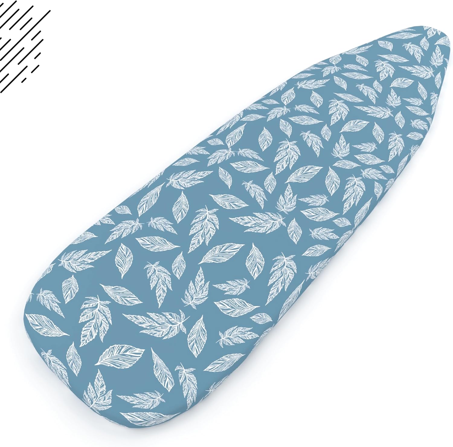 Encasa XO Ironing Board Cover and Pad 54"x15" - Thick 3mm Felt Padding, Drawstring Tightening & Lock, Easy Fit, Scorch & Stain Resistant, Fits Standard Large Ironing Board - Big Leaves Blue