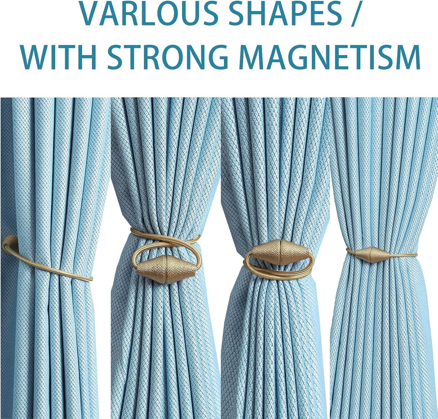 - WIDE APPLICATION: The length and binding method can be adjusted freely according to the thickness of the curtain. It is widely used in curtains in different places such as bedroom, living room, dining room, bathroom, kitchen, office, courtyard and so on. Different colors of magnetic drape tiebacks adorn your curtains, which can change different styles, giving the curtains a unique charm