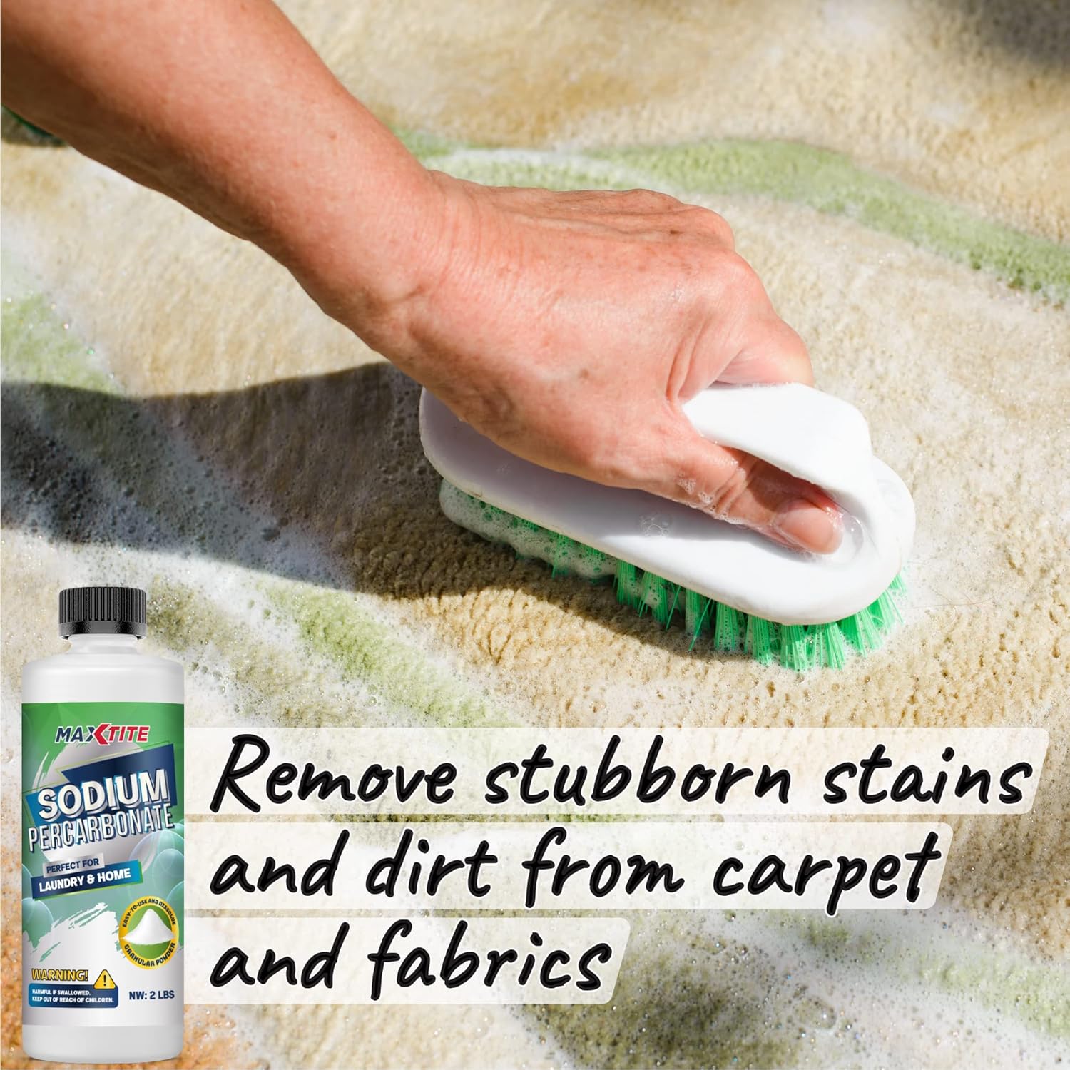 - 100% PURE Sodium Percarbonate, an excellent multi-purpose cleaning and bleaching agent for many tasks around your home.