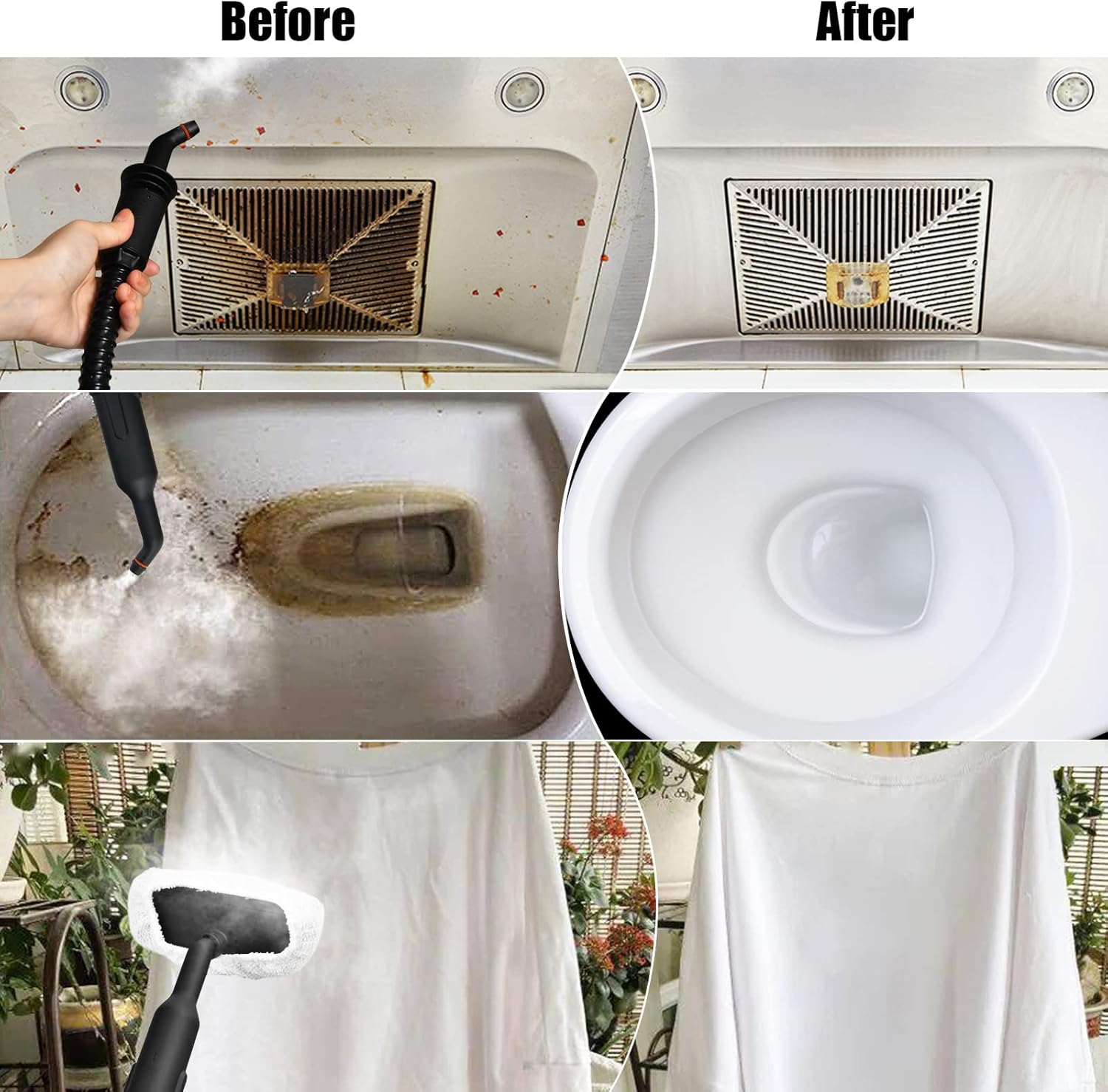 - 🏠【Chemical-free Steam Cleaning】With 1400W of power, the steam cleaner provides 257℉pressurized hot steam to eliminate stubborn stains and dirt, saving your time and improving your efficiency. The natural household steamer uses 100% chemical-free water to clean, without any harmful substances and residues so as to protect your family’s safety.