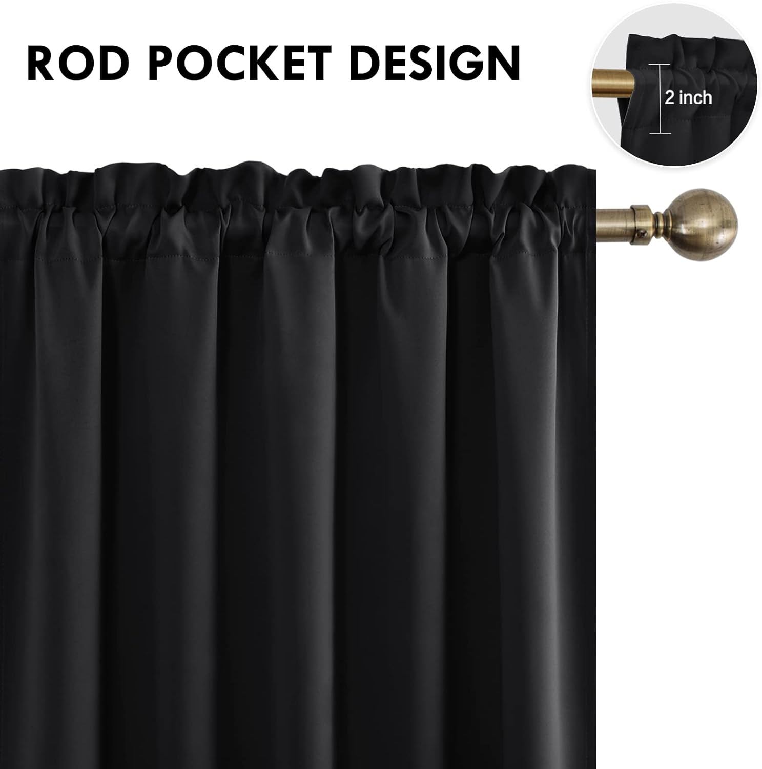 DWCN Black Blackout Curtains for Bedroom, 60 x 84 inches Long - Room Darkening Thermal Insulated Large Drapes, Set of 2 Rod Pocket Curtain Panels