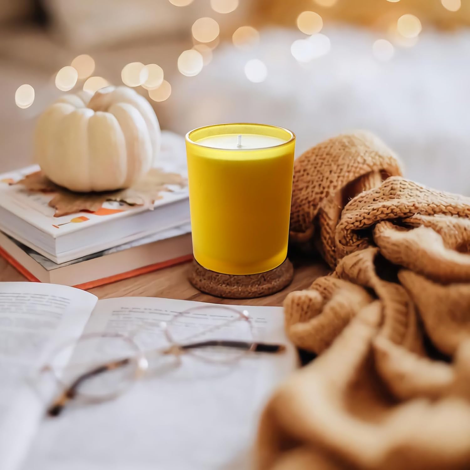 Thick Candle Jars for Making Candles 12 Pcs, 7 OZ Empty Jars with Wood Lids for Candle Making, Sample Container, Frosted Yellow