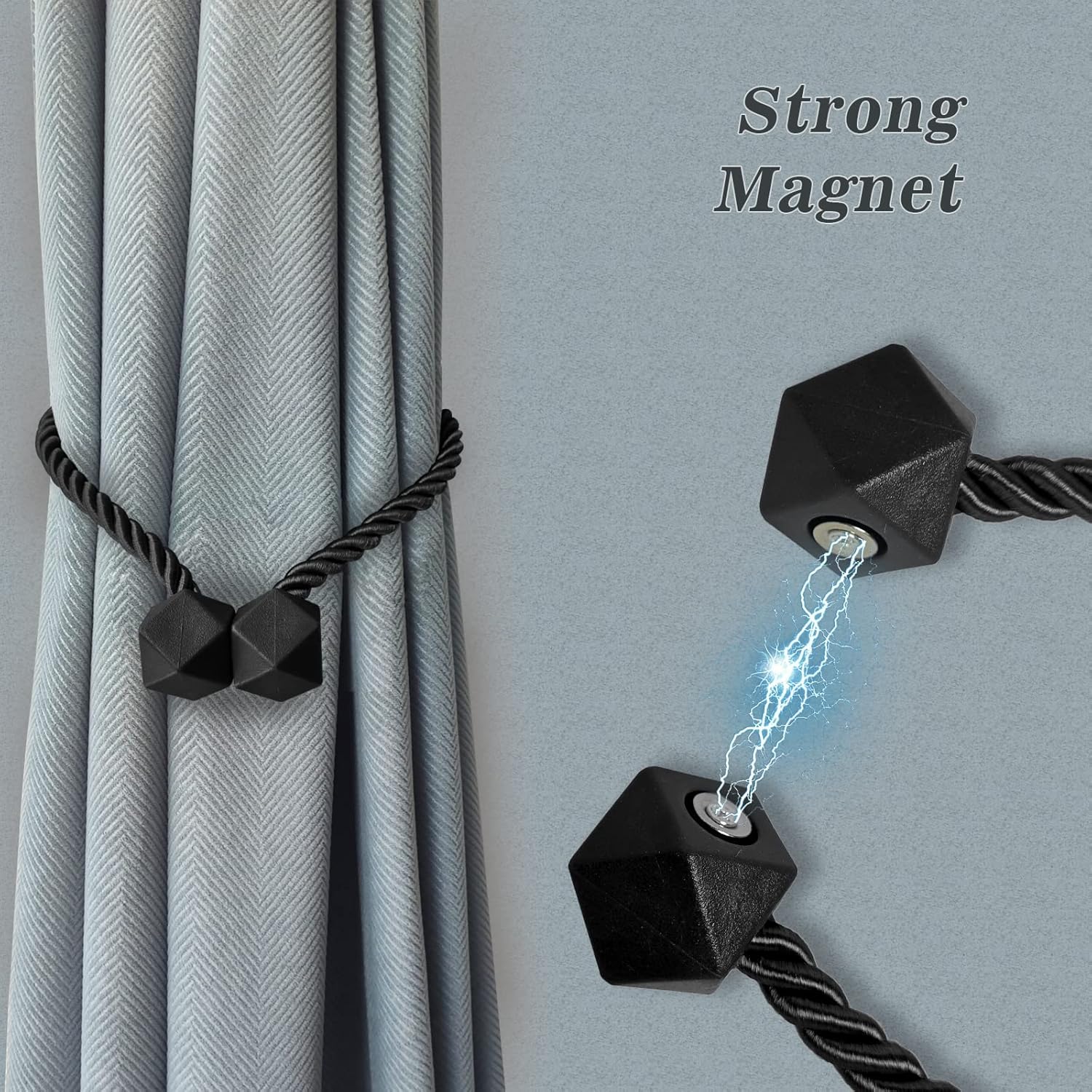 - [Upgrade Powerful Magnetic] Our magnetic curtain tiebacks magnets use high-end new imported nickel-plated magnets, with strong corrosion resistance and durability, more magnetic than ordinary magnetic curtain tiebacks, and do not rust and not lose color. The rope of curtain tie adopts upgrade thickened solid polyester yarn, which is not only durable, but also not easy to wear or pilling.