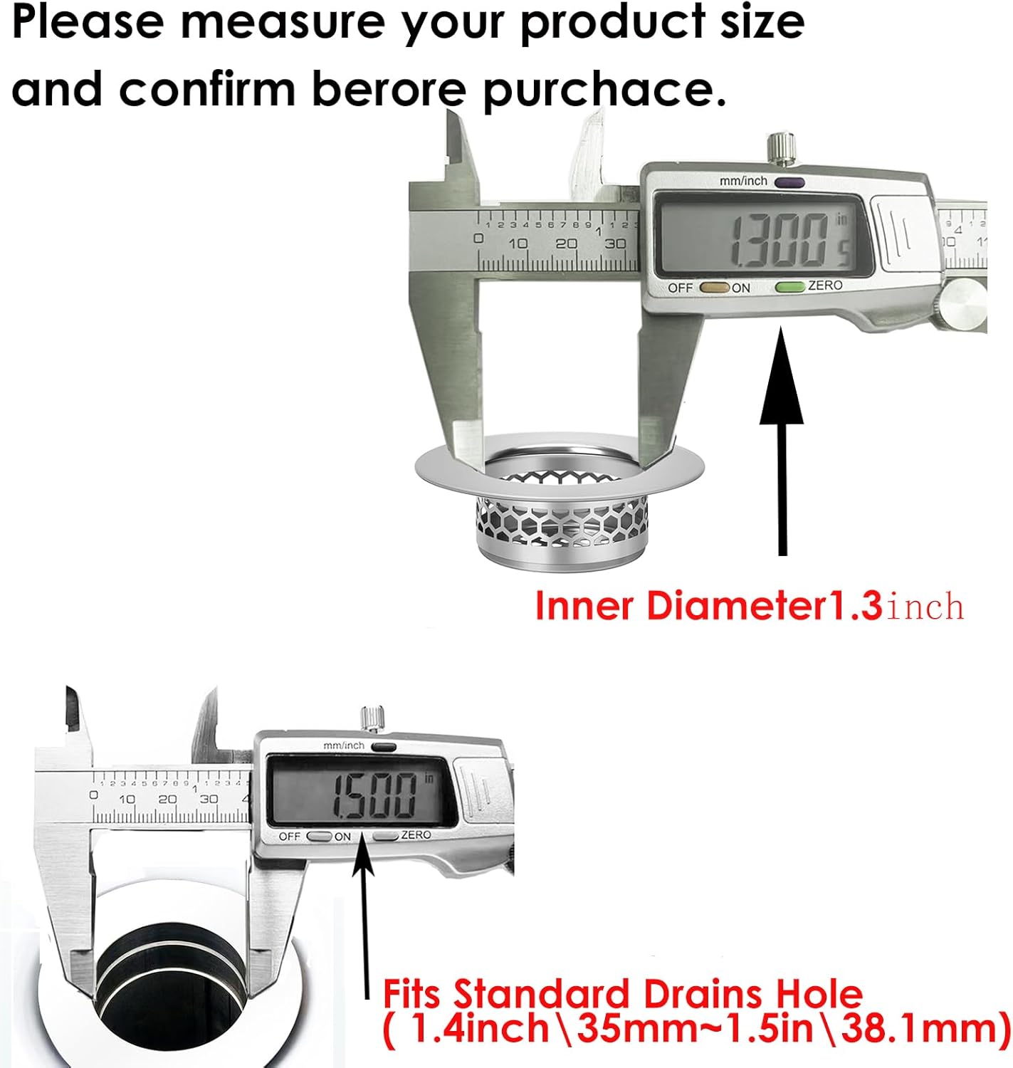 - PRODUCT SIZE: 1.3 inch (33 mm) . Mounting hole size: 1.4 inch (35 mm) - 1.5 inch (38.1 mm). Please measure your drain hole before purchase."