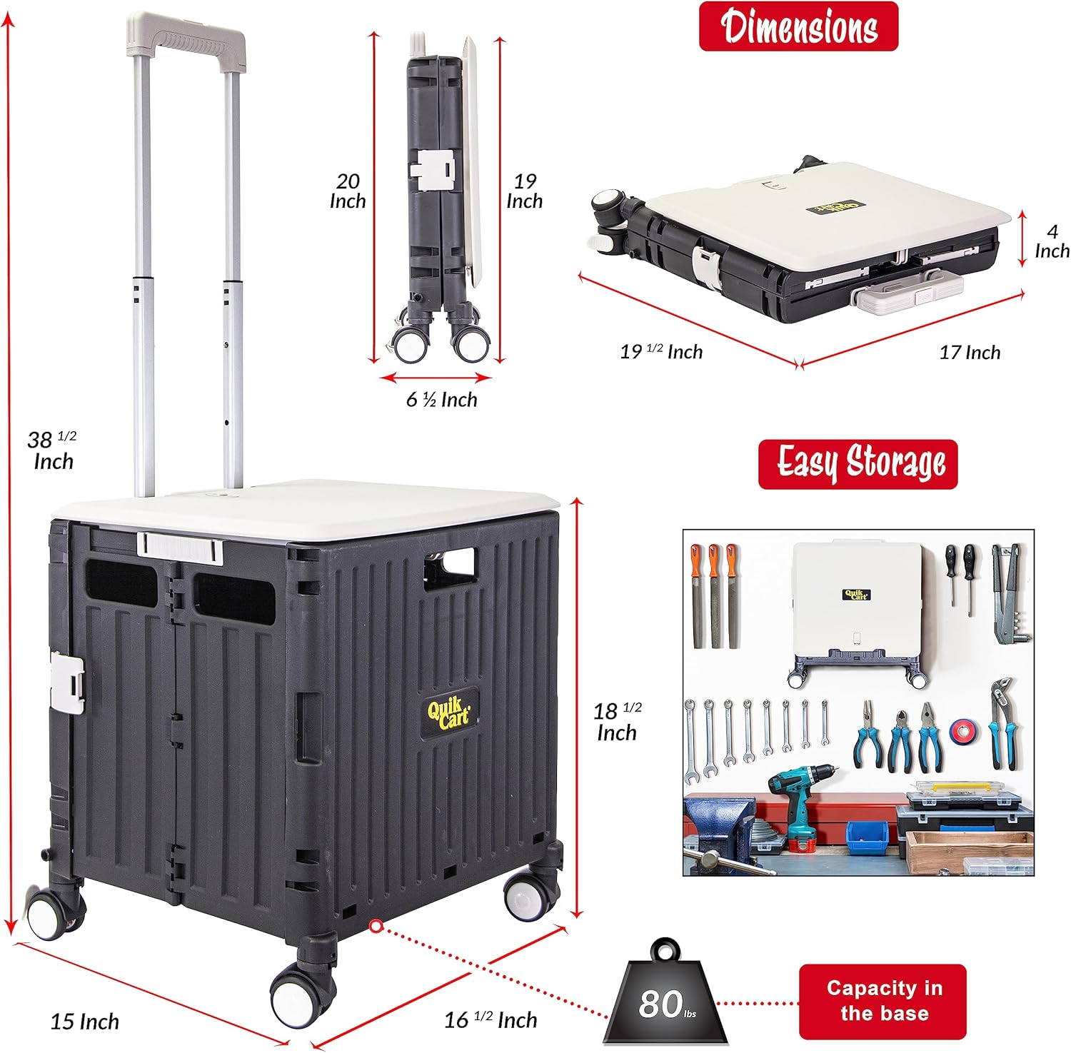 - Collapsible: Folds down to only 3-inches thick for compact storage weighing less than 8-pounds. ideal for groceries, milk Rolling totes, pull cart and plastic crate are ideal file organizers, rolling utility cart, and pull cart.