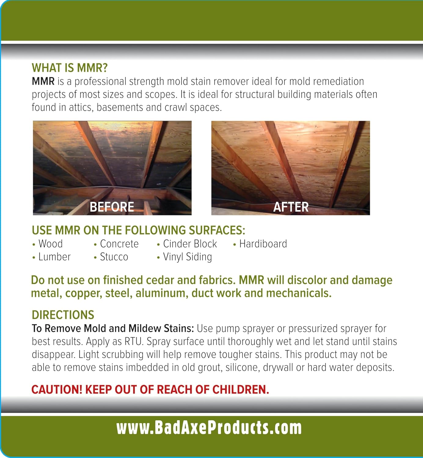 Bad Axe MMR Instant Mold Stain and Mildew Stain Remover - Professional Strength, Contractor Grade Cleaning Solution, Professional Quality Formula, Odor Removal, 1 Gallon (4)