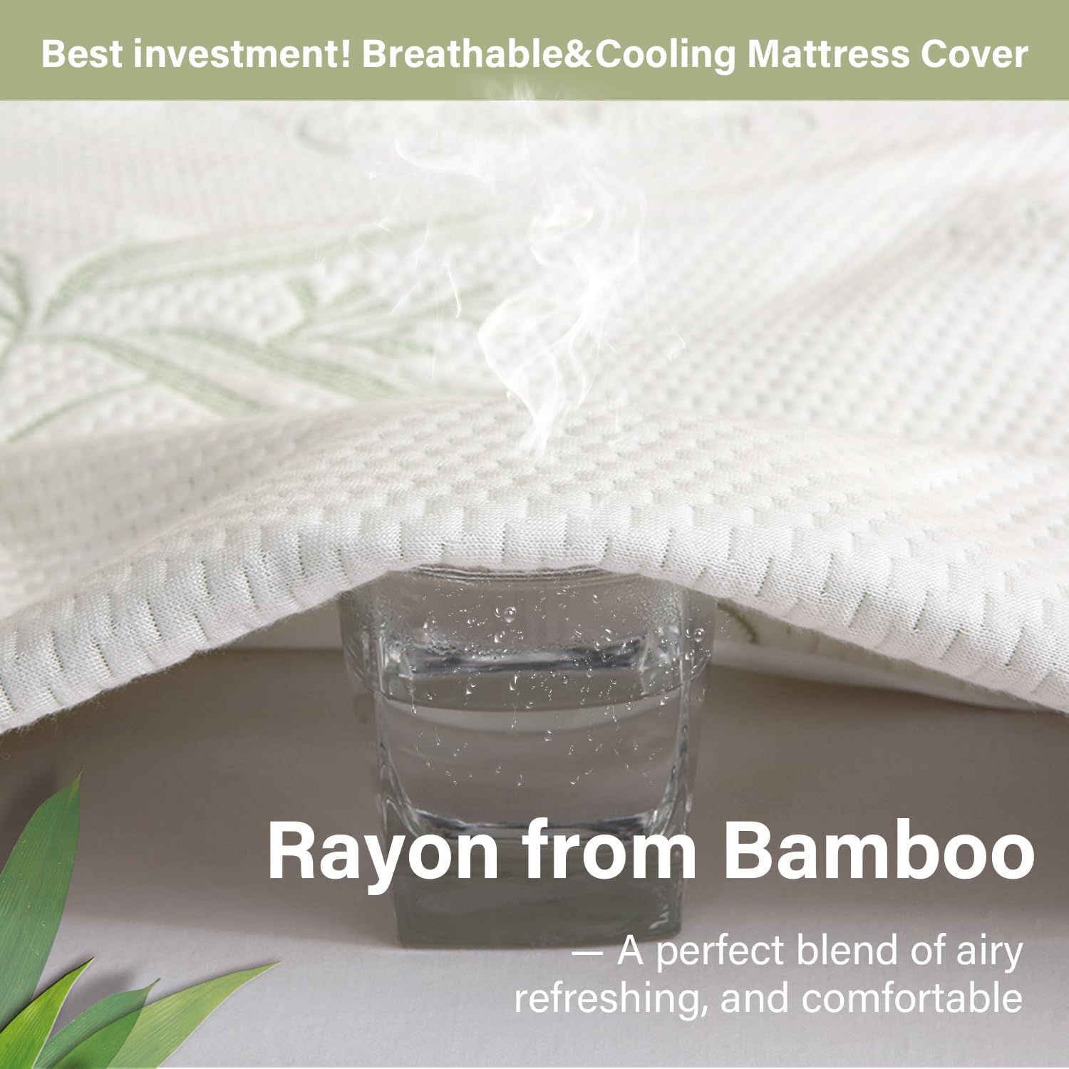 - · 【Noiseless and Excellent Quality】Derived from noiseless rayon derived from bamboo cloth and TPU backing, this cloth mattress protection cover magically prevents any crinkly and plastic sound even if you are in RV or truck bunk; rayon derived from bamboo fabric produced by strict process and inspection, comes out the deluxe quality of this plastic bed cover and keeps the same shape however you twist and bears 100 times machine washing. recommended truly practical gifts to parents, friends.