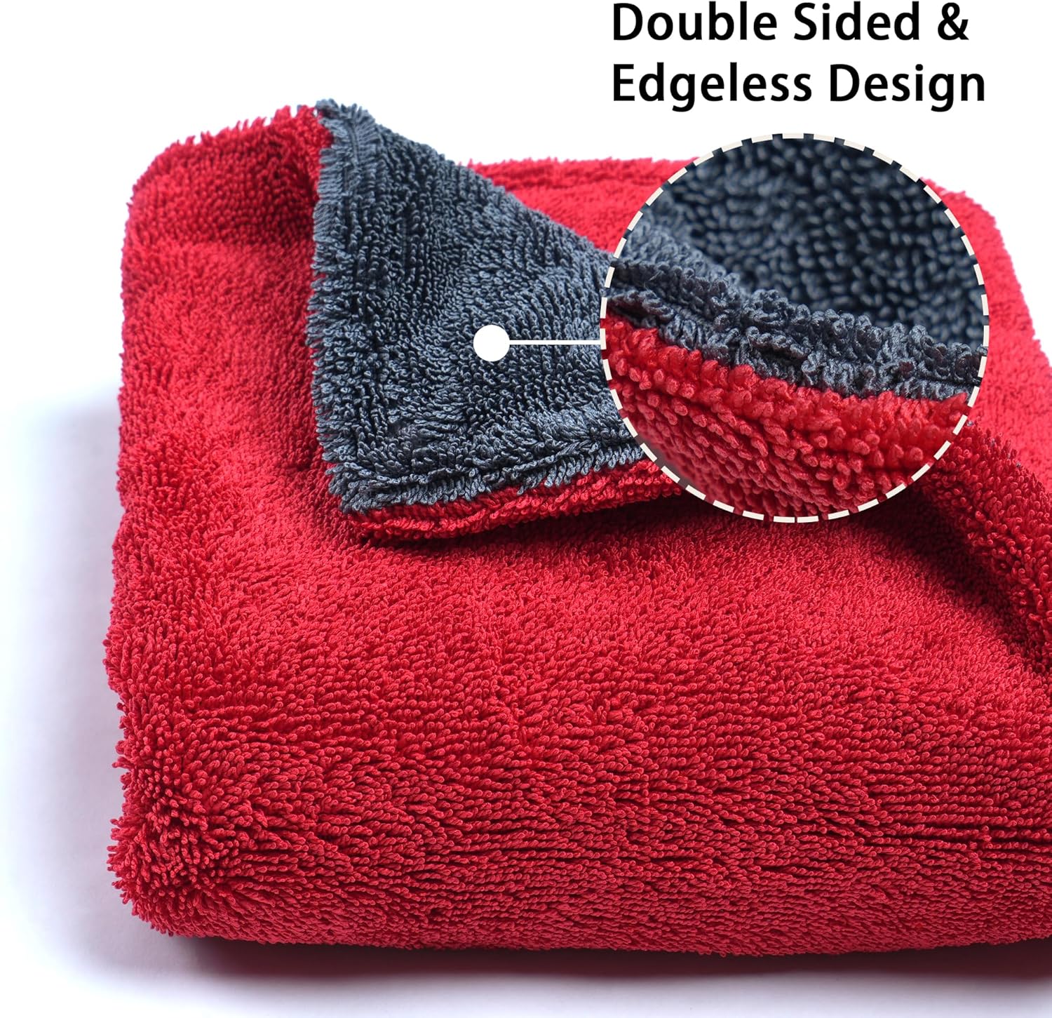 Greenfound Microfiber Towel for Cars, 1000GSM Car Drying Towel, Double Twist Pile & Edgeless Design, No Streaks, Scratches, or Water Spots, Soft and Absorbent, 18"×24", Red&Grey