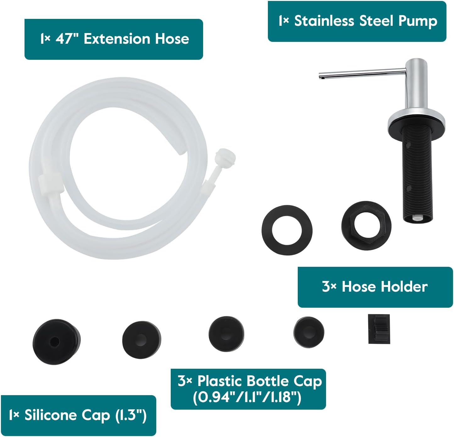 - No More Messy Refills: Our sink soap dispenser pump is equipped with a 47" extension tube, you can insert the tube directly into the large dish soap dispenser. No need to refill small canisters anymore