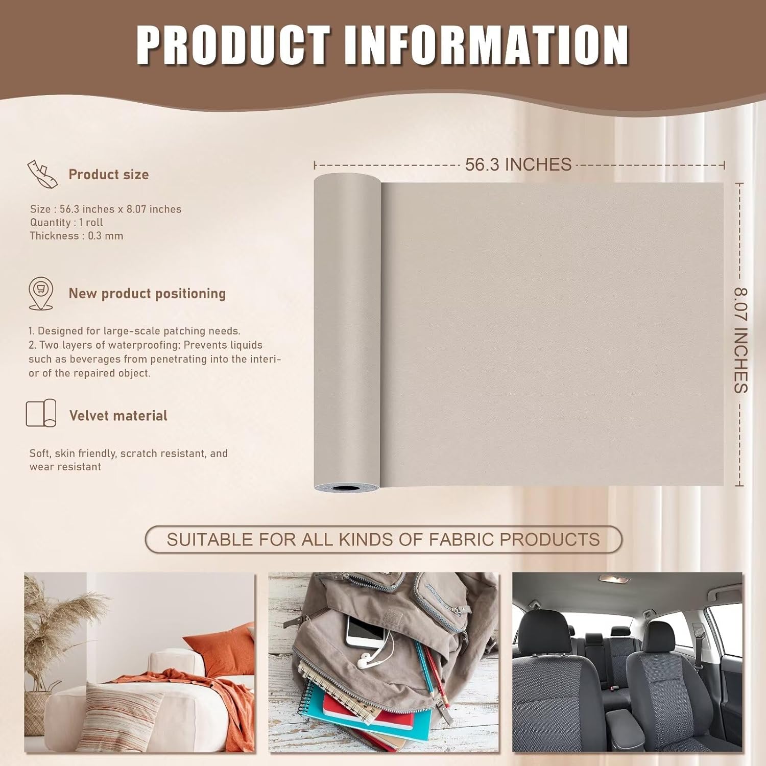 Azobur Couch Patches, Extra-Large Durable Fabric Tape, Ideal for Automotive Upholstery Repair, Waterproof, Self-Adhesive, Quickly Fix Sofas, Car Interiors, and Other Fabric Items (Beige Brown)
