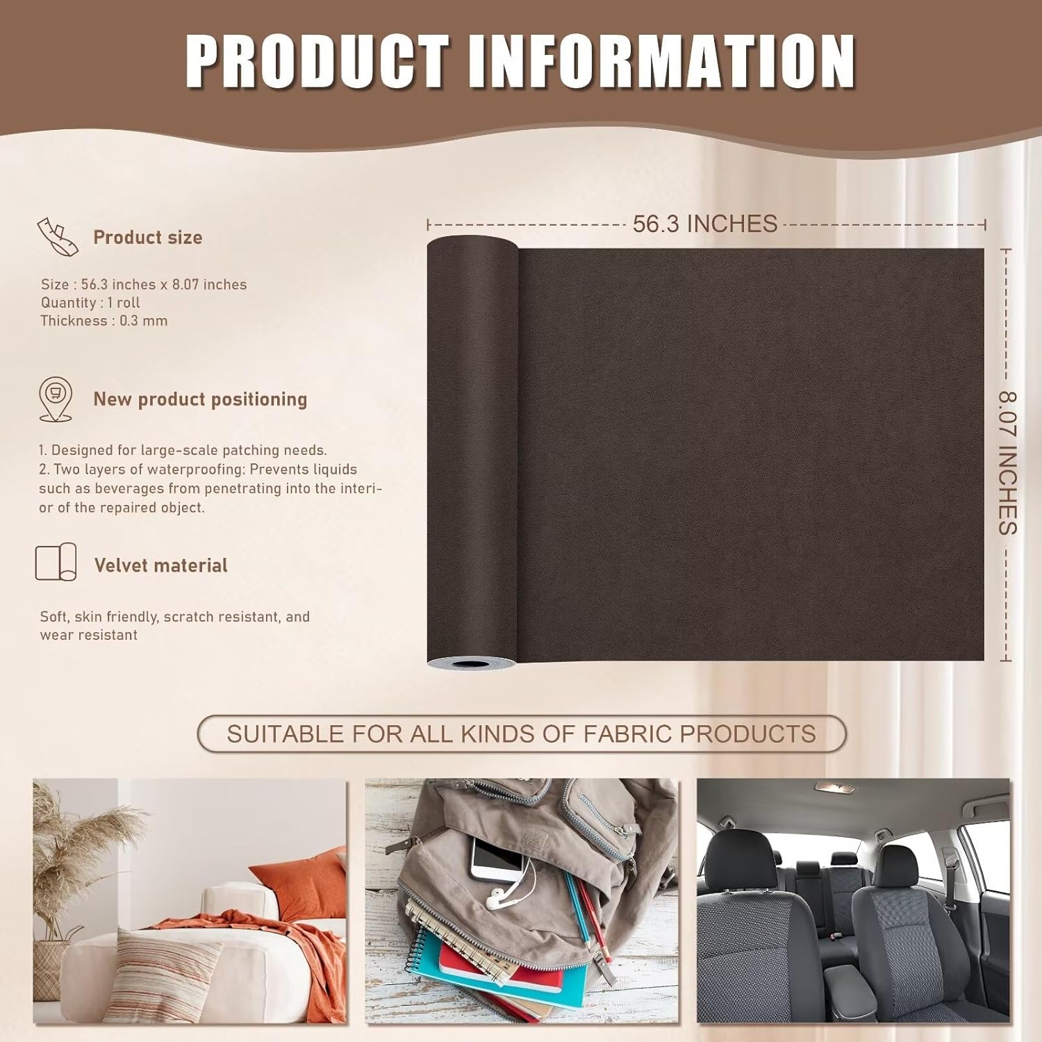 - Extra-Large Size: This microfiber couch repair kit measures 8.07 inches x 56.30 inches, with a thickness of 0.3mm.