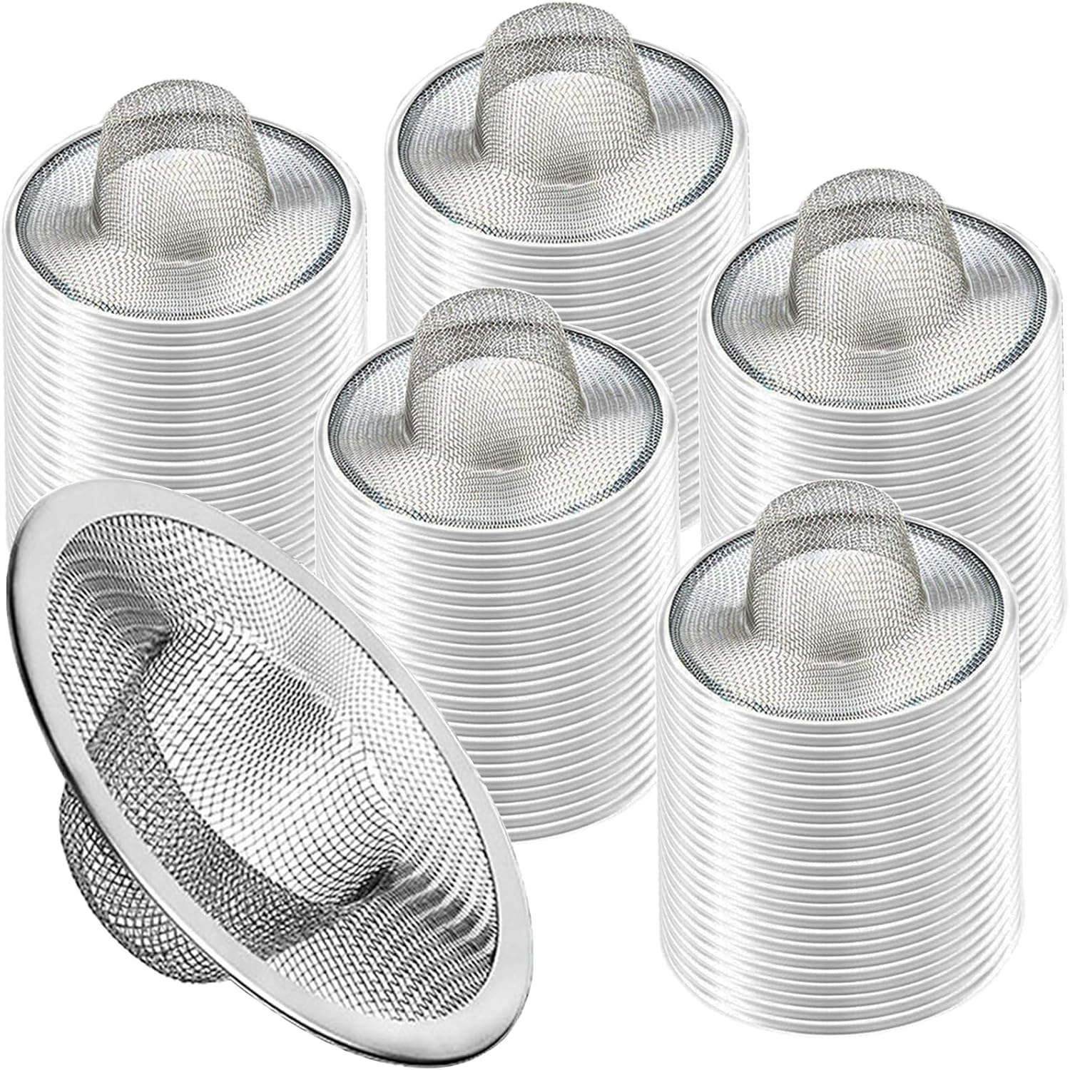 Heavy Duty Stainless Steel Slop Basket Filter Trap Mesh Metal Sink Strainer Perfect for Kitchen Sink/Bathroom Bathtub Wash Basin Floor Drain Balcony Drain Hole Utility (2.75" 100pcs)