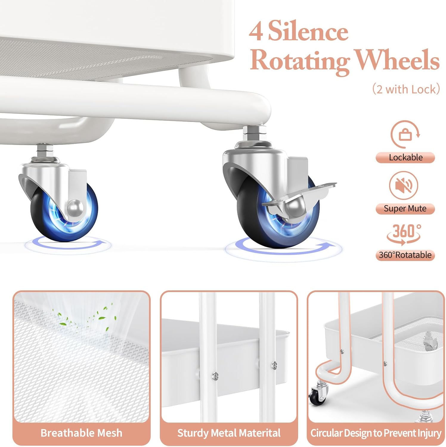 - 【HIGH MESH GUARDRAIL Design】The rolling cart features a high mesh design, providing added height to prevent items from falling off. This utility cart ensures secure storage for all your items. You can display your photos on top of the mesh to add fun to daily life.You can discover more storage solutions and interesting ideas in the process of using this cart.