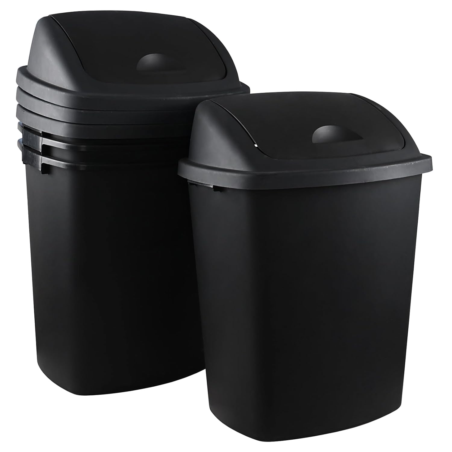 Zopnny 4-Pack 18 Gallon Tall Kitchen Swing Top Garbage Can, Plastic Swing Top Lid Trash Can, Black