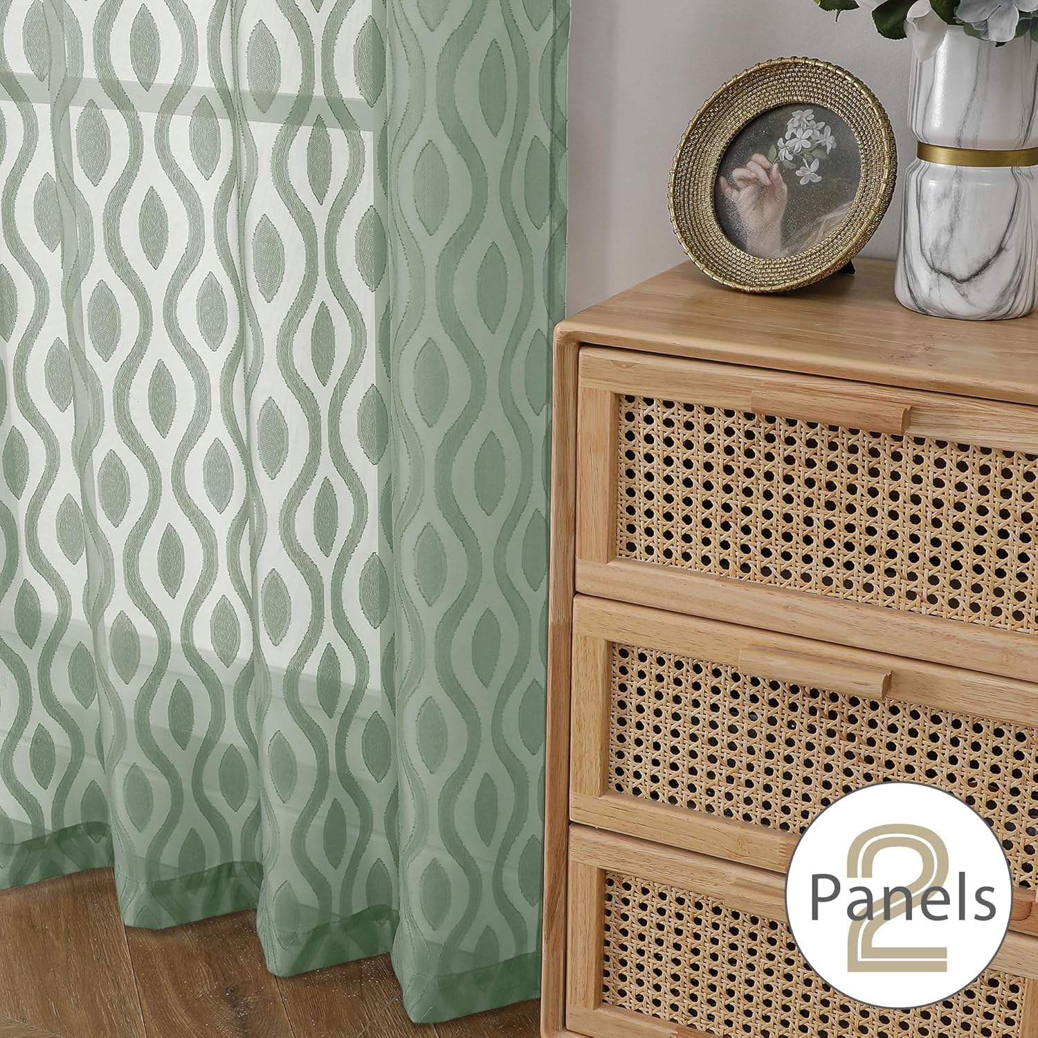 - Light Filtering Curtains: Crafted from premium quality sheer fabric, these sage green mesh kitchen window valances are lightweight yet durable, allowing natural light to filter through while maintaining a sense of privacy. The soft, flowing texture of the fabric enhances the overall elegance of the design, making it an ideal choice for bedrooms, living rooms, or any space where a touch of sophistication is desired