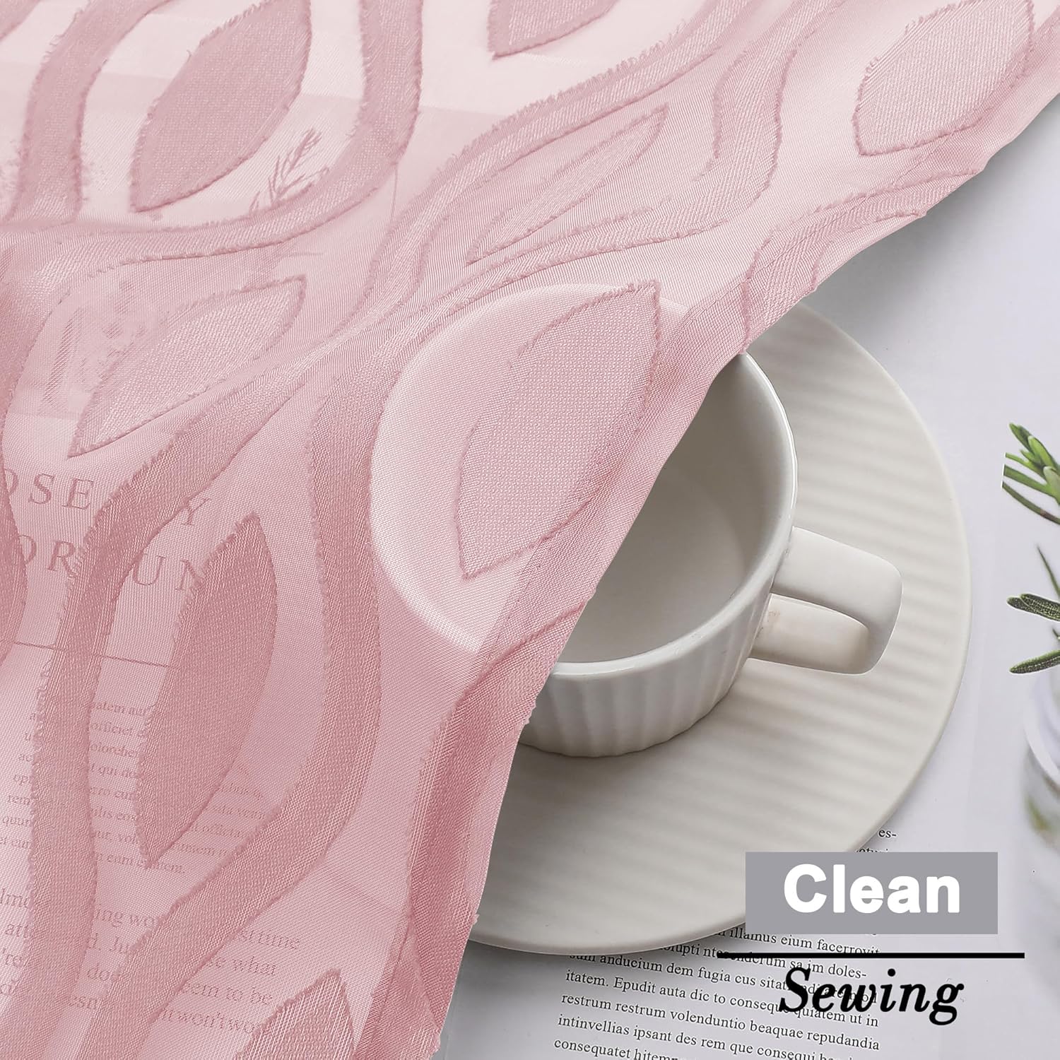 Aiyufeng Pink Sheer Curtains 2 Panels 54 Inch Length, Soft Lightweight Clip Jacquard Textured Blush Curtains for Bedroom Living Room, Modern Wavy Line Solid Voile Sheer Drapes, 40" Wx54 L Inches