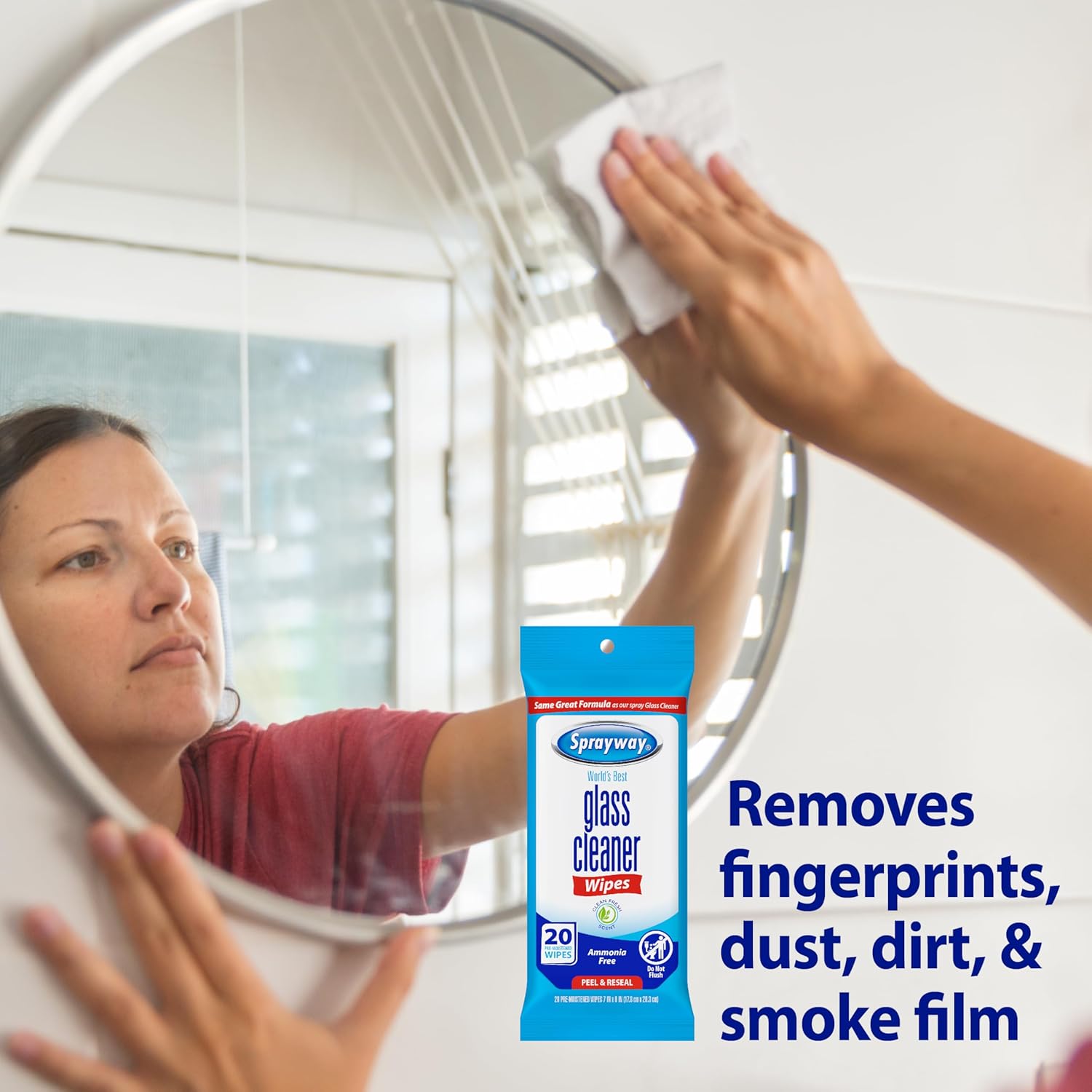 Sprayway Glass Cleaner Wipes, 20ct, Pack of 12, On-the-Go Resealable Package, Pre-Moistened, Original Ammonia-Free Formula, Removes Fingerprints, Dust, Dirt, All Glass Surfaces, 2 trays per cartons