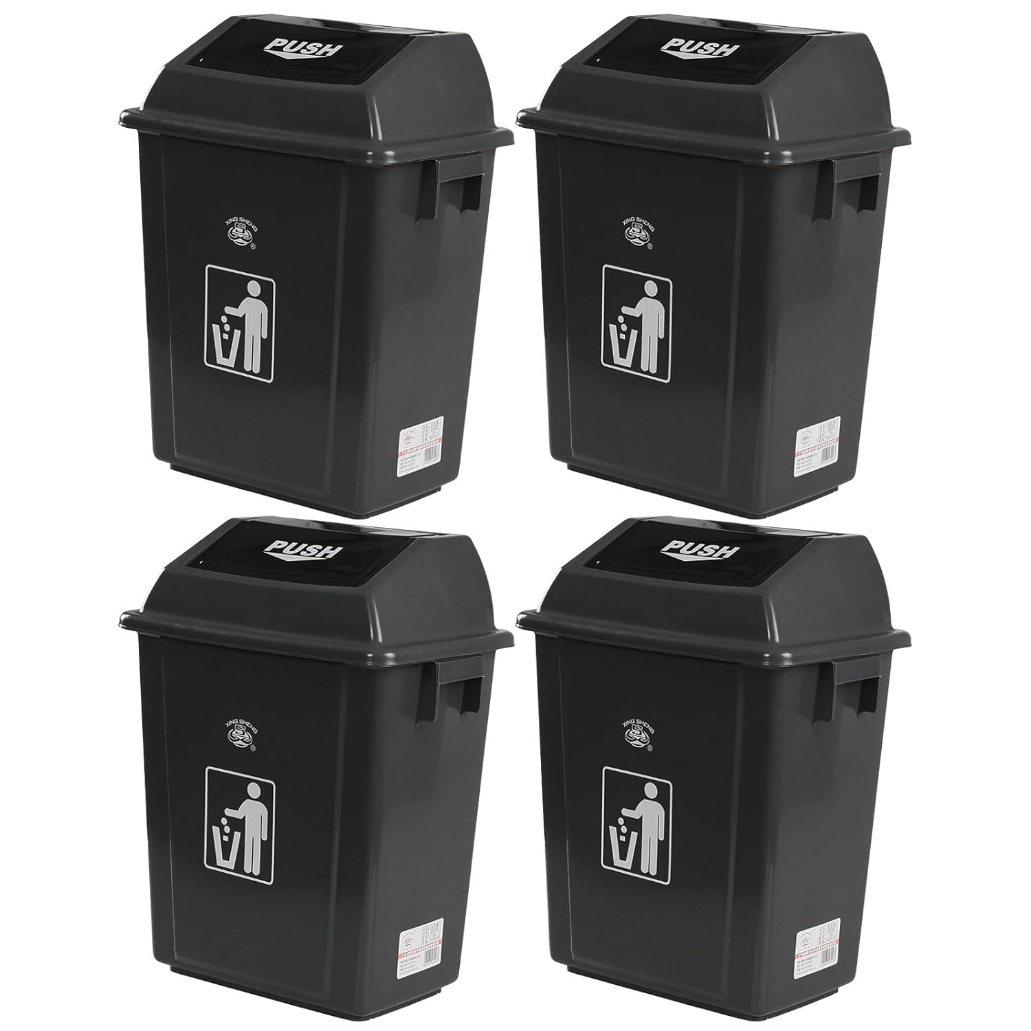 - Set of 4 gray trash cans suitable for kitchen use