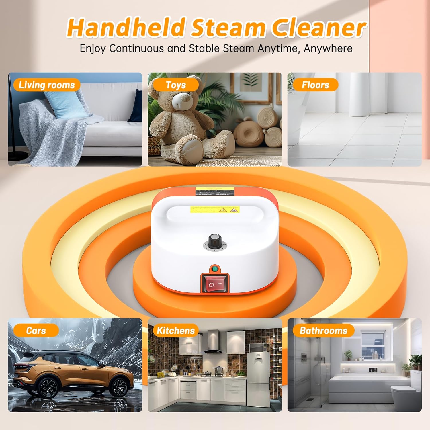 - 6-Level Steam Adjustment Knob】The multifunctional steam cleaner machine is equipped with 6 steam humidity options, Level 1 is the lowest humidity, Level 3 is medium humidity, Level 6 is the highest humidity, It can be adjusted according to your specific cleaning needs, Ideal for cleaning and disinfecting kitchen, Car, Sofa, Carpet, Furniture, Floor, Tile, Toys.