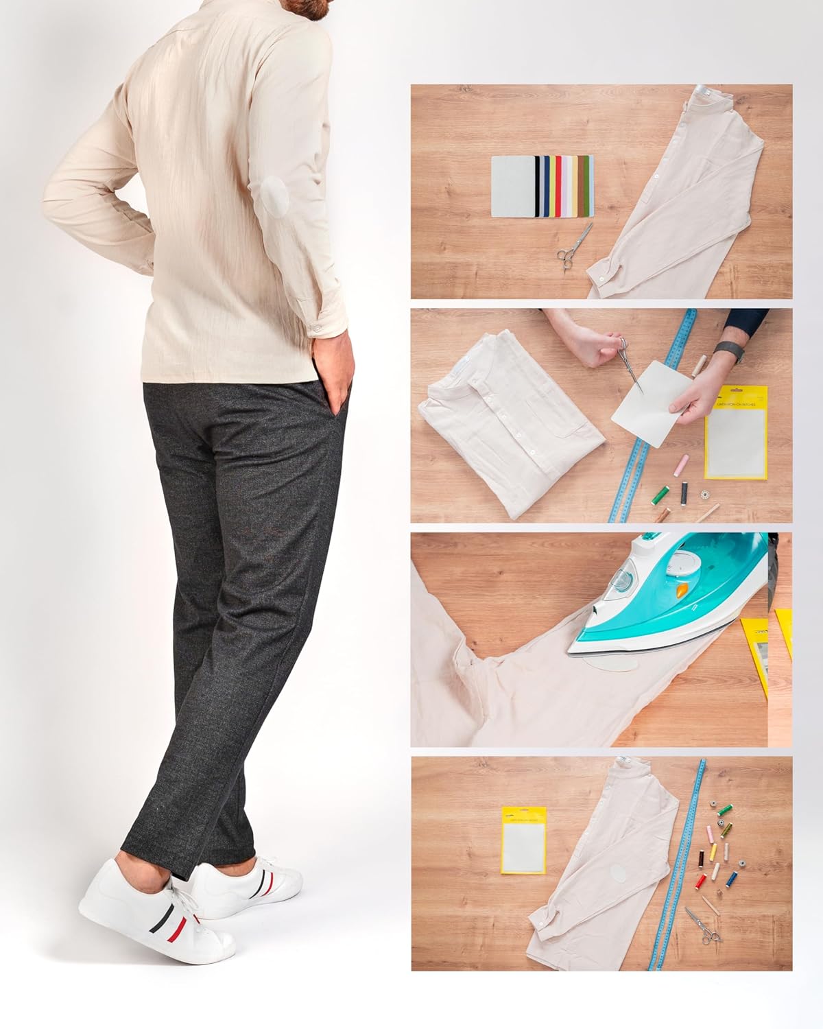 - 𝗗𝘂𝗿𝗮𝗯𝗹𝗲 𝗮𝗻𝗱 𝗪𝗮𝘀𝗵𝗮𝗯𝗹𝗲: Machine-washable and dryer-safe at high temperatures. Re-iron up to 3 times if needed. Ideal for high-wear zones like elbows, knees, and seams. Suitable for garments, bedding, cushion covers, upholstery, linen totes, aprons, and more – just ensure fabric tolerates ironing.