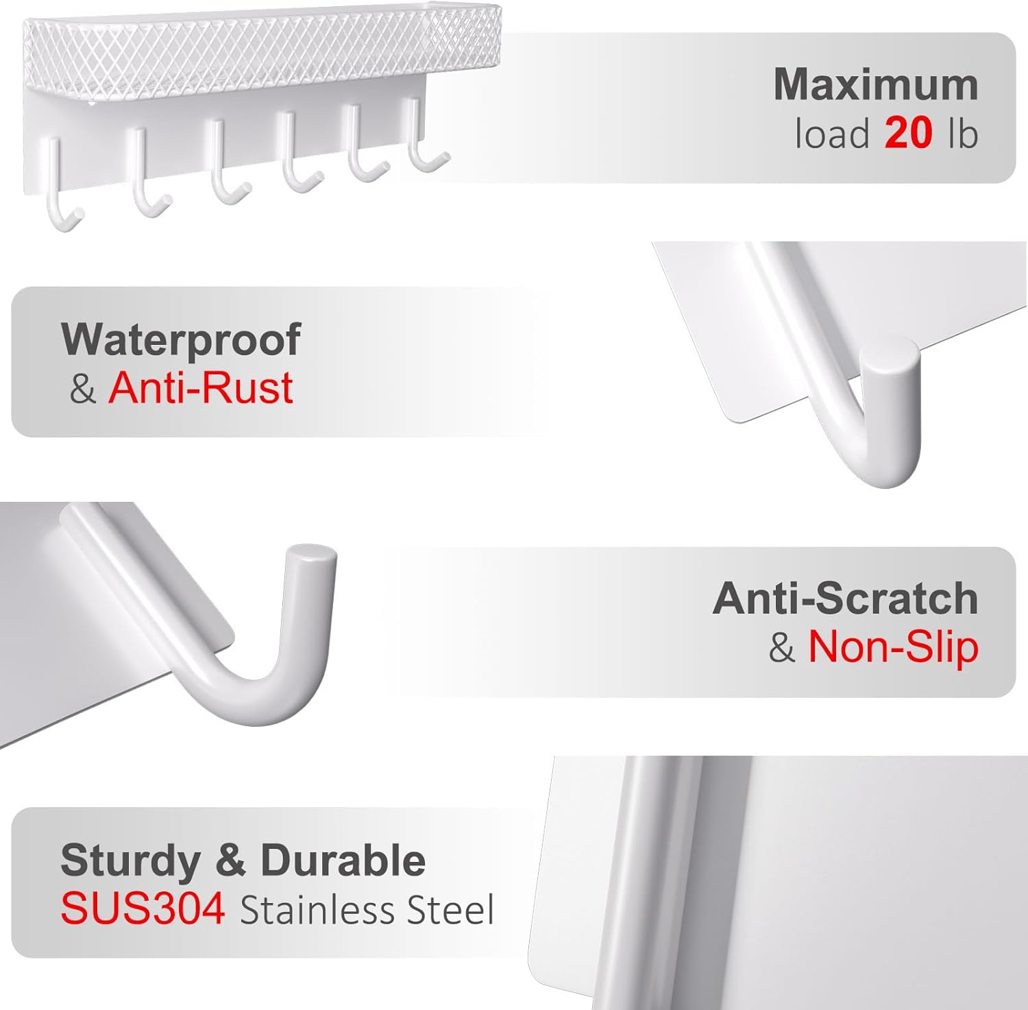 - MAIL HOLDER AND KEY RACK organizes any room instantly. Keep keyrings, sunglasses and other items organized and within reach of the front door, work desk, stove or shower with 6 sturdy key hooks.