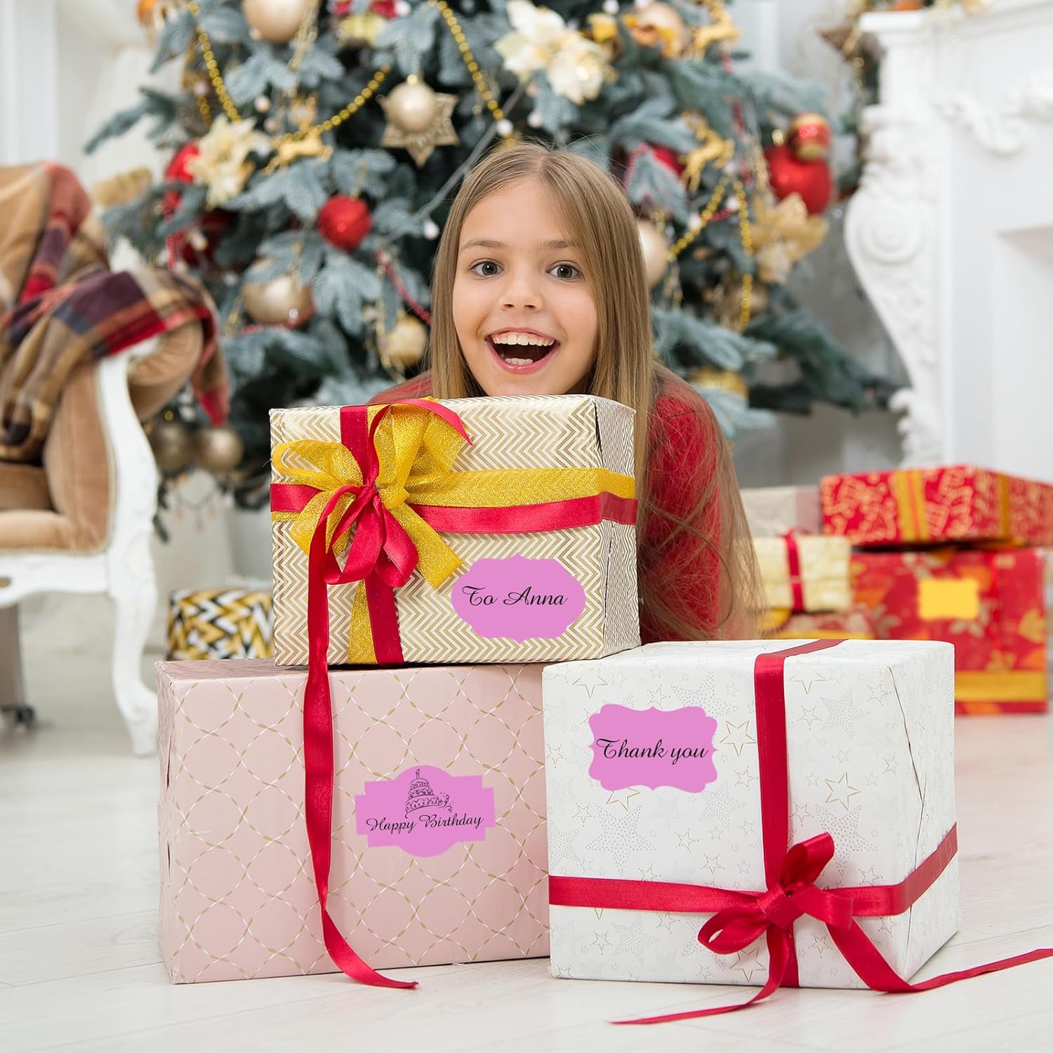 - 【Widely Usage】Just need to peel off the sticker, write words and stick them where you want. With different color paper element, these sticker labels can not only be applied as Christmas gift tags, but also for wedding, birthday, mailing labels, name tags, etc.