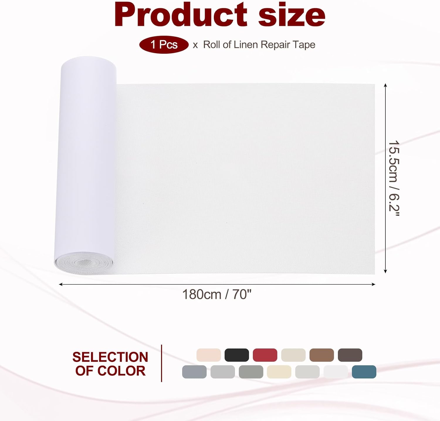 - Specification: Size: 180x15.5cm/70x6.2 inch; Thickness: 0.1cm/0.04 inch; Color: White; Material: Line; Packing List: 1 Roll Linen Repair Tape