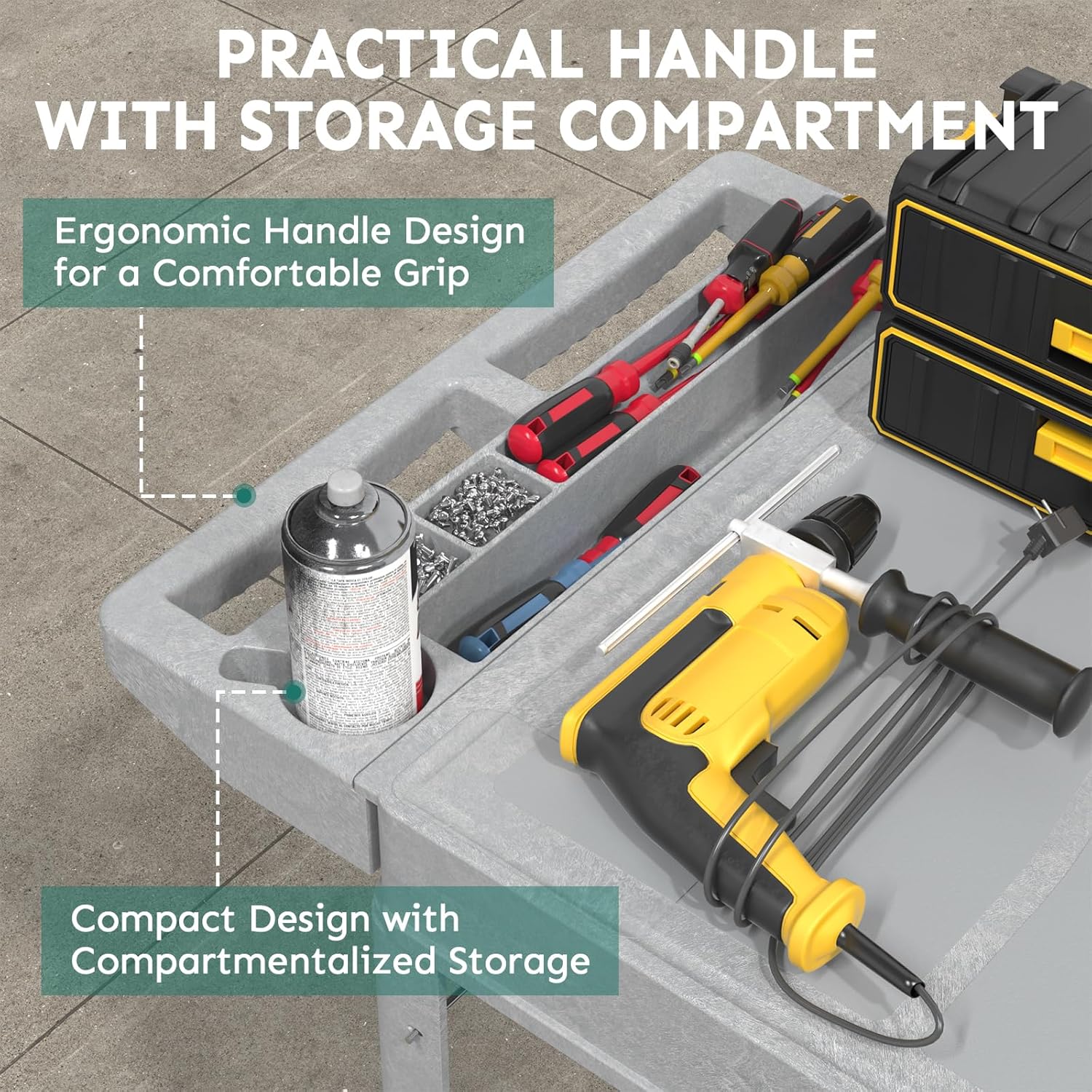 - 【Portable Design】Plastic utility service carts are equipped with ergonomic armrests that allow you to move with less effort and experience a comfortable grip. Modular storage compartments and small holes are designed to keep your tools handy and enhance your experience.