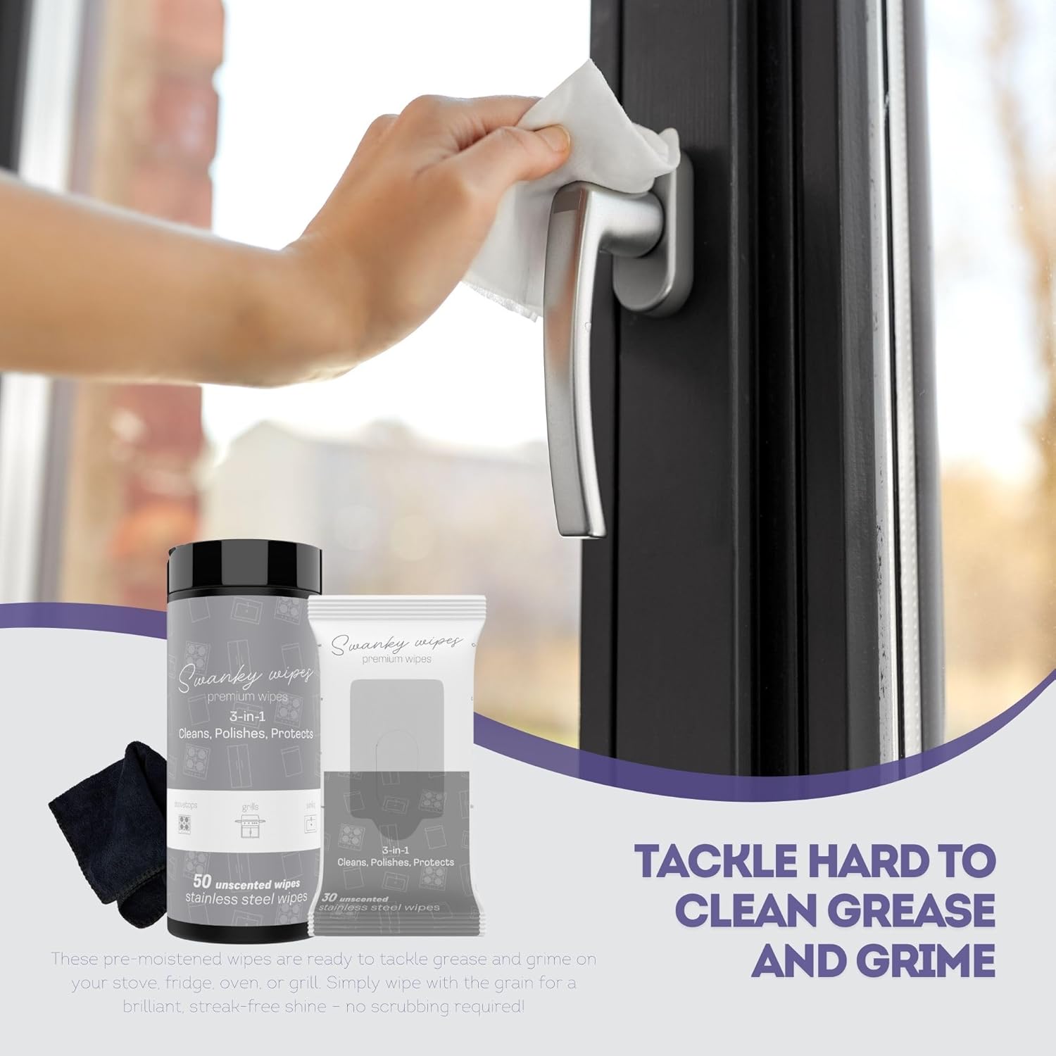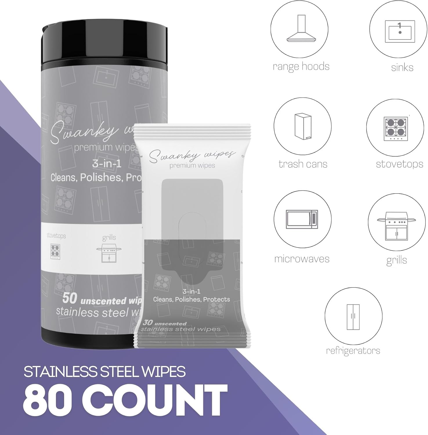 - STAINLESS STEEL CLEANING - Swanky stainless steel wipes polish, clean, and protect your stainless steel appliances. These wipes efficiently remove water marks, grease, and grime, leaving your appliances with a streak-free shine.