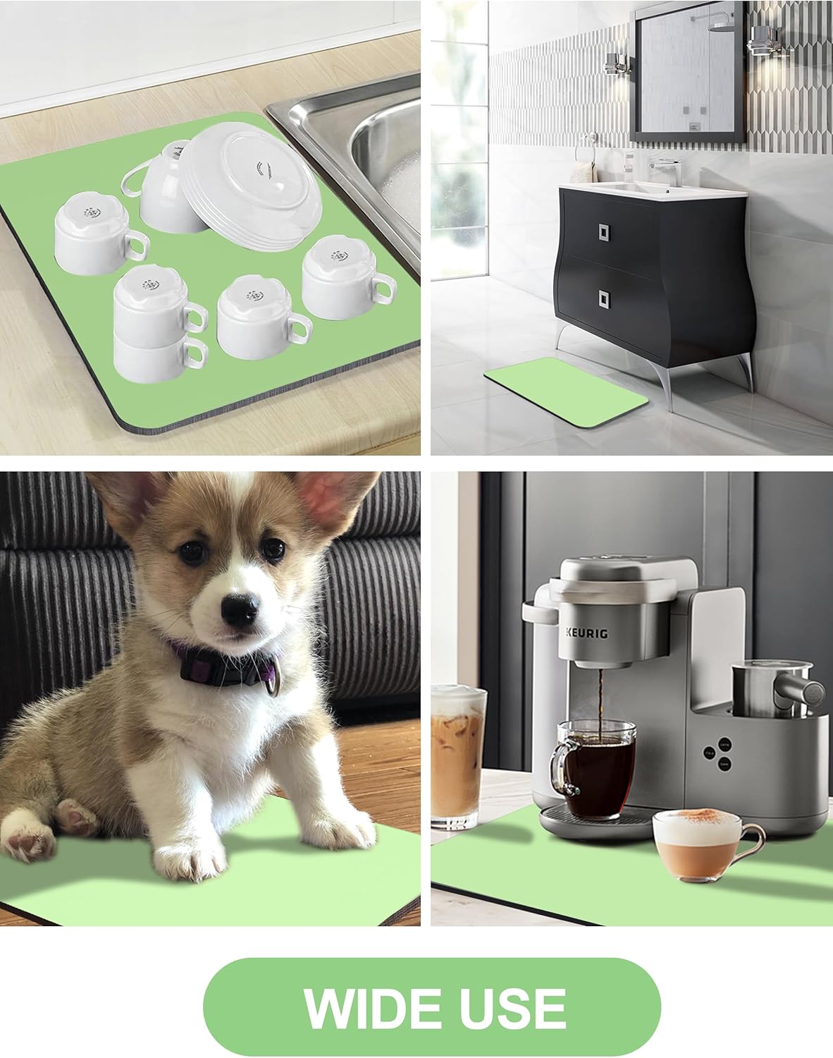 - Multifunctional Dish Mat: This kitchen drying mat can be placed anywhere you want to absorb water, such as kitchen countertops, shelves, under the sink, bathroom countertops, dining table, also great for pets as a placemat or bed.
