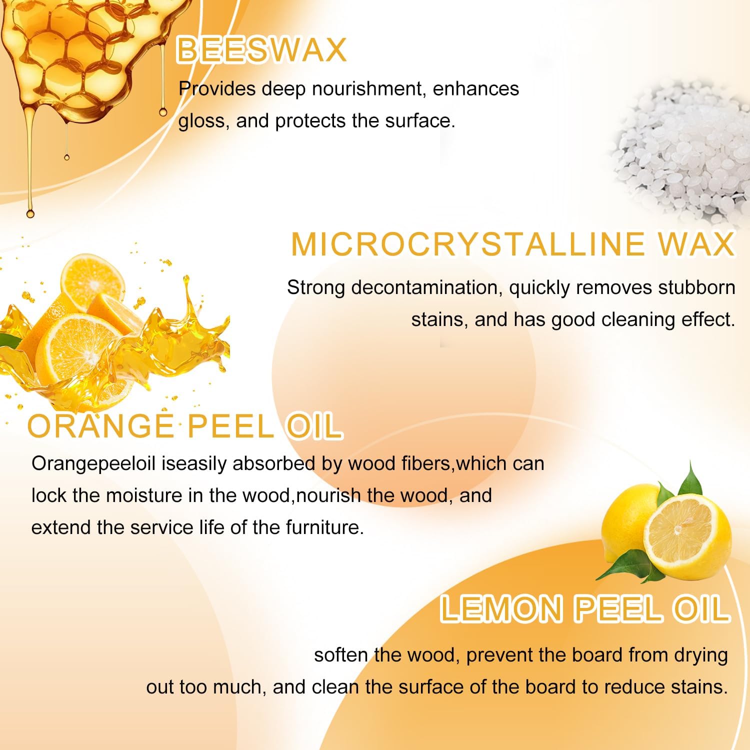 - 【QUICKLY REPAIR SCRATCHES】Beeswax ingredients can penetrate fine scratches, reduce the wear marks of wooden furniture, restore the surface gloss, form a long-lasting protective film, and extend the service life of furniture