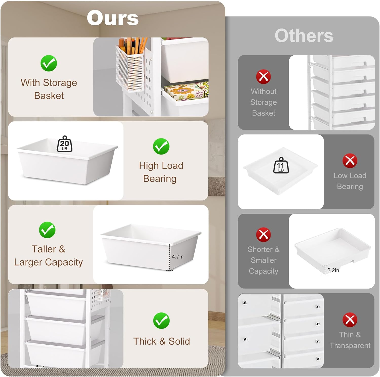 - 【Quick & Easy Assembly】 Comes with a detailed instruction manual inside the package to walk you through each installation step. With clearly labeled parts and a user-friendly design, this storage cart with drawers can be assembled quickly and easily—even for first-time users.