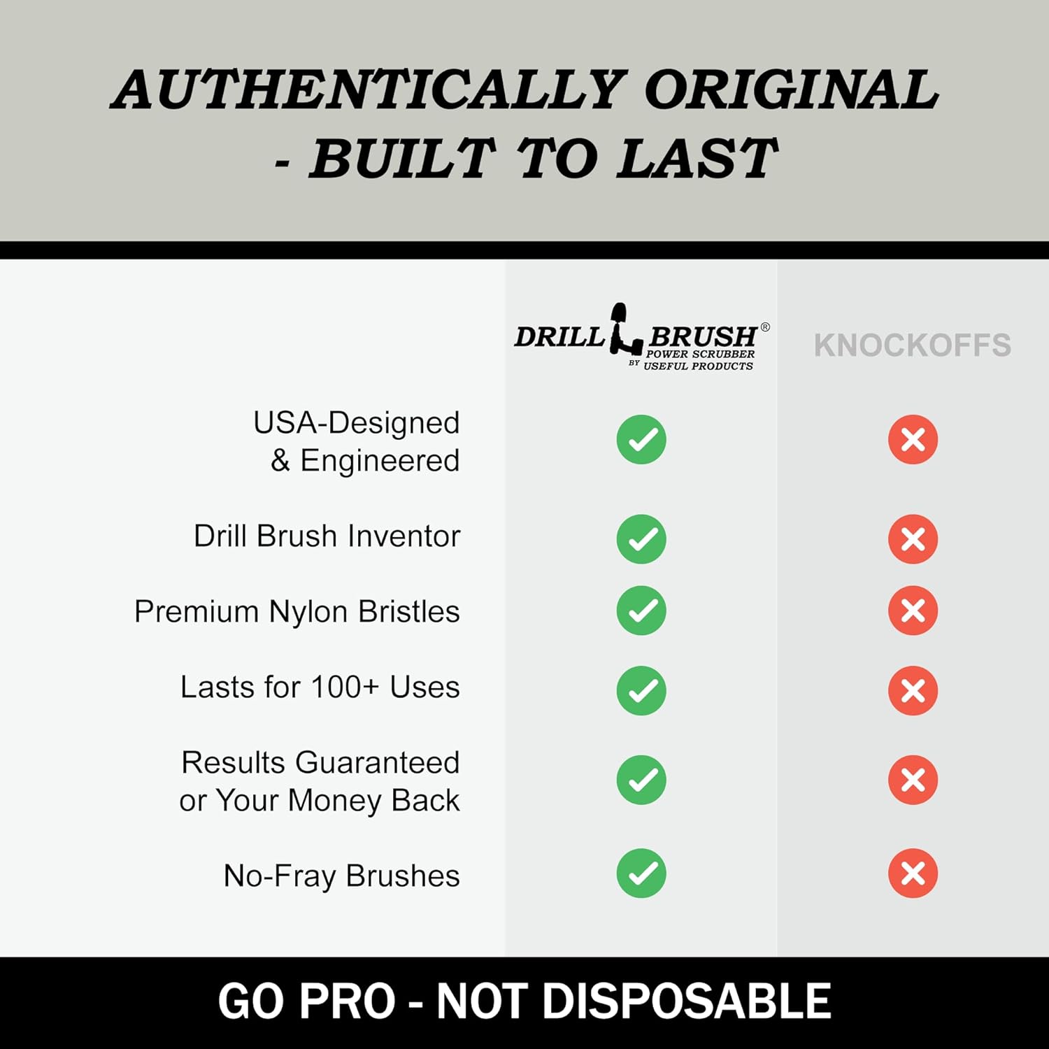- Superior Support and Durability: All Drillbrush Products have a 90 day no questions asked return window. If you are not completely satisfied with our product, we will issue a refund or ship out a replacement at the buyer's request. All brushes feature rugged steel, quarter-inch, quick-change shafts. Fits all cordless drills AND impact drivers. Cordless Drill NOT included.