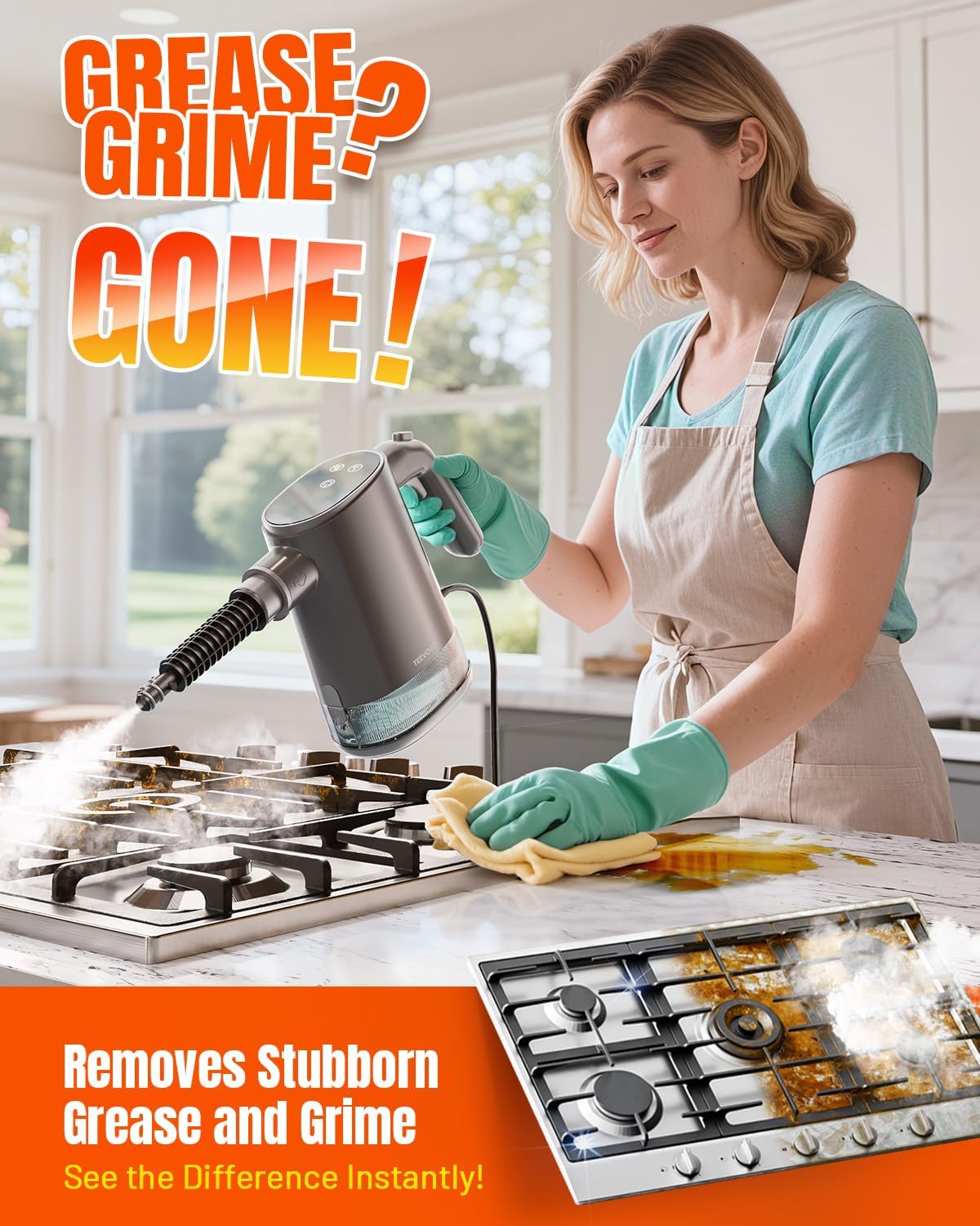 - Impressive Results: The TEEVOGO hand held steam cleaner makes it easy to remove built-up gunk from bathroom grout, kitchen corners, and other tight spots. This handheld steam cleaner for home restores original shine to hard surfaces, delivering that satisfying “wow” moment every single time