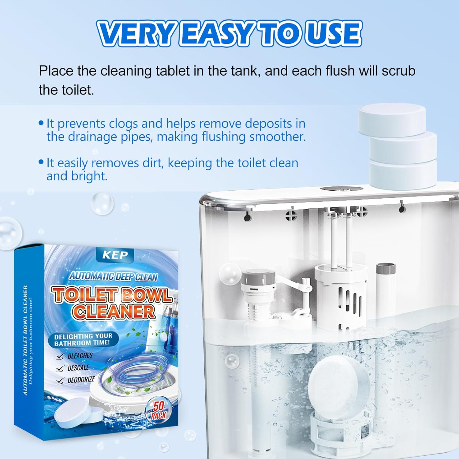- Long-lasting Freshness-50 tablets release powerful cleaning agents with every flush, leaving a refreshing fragrance