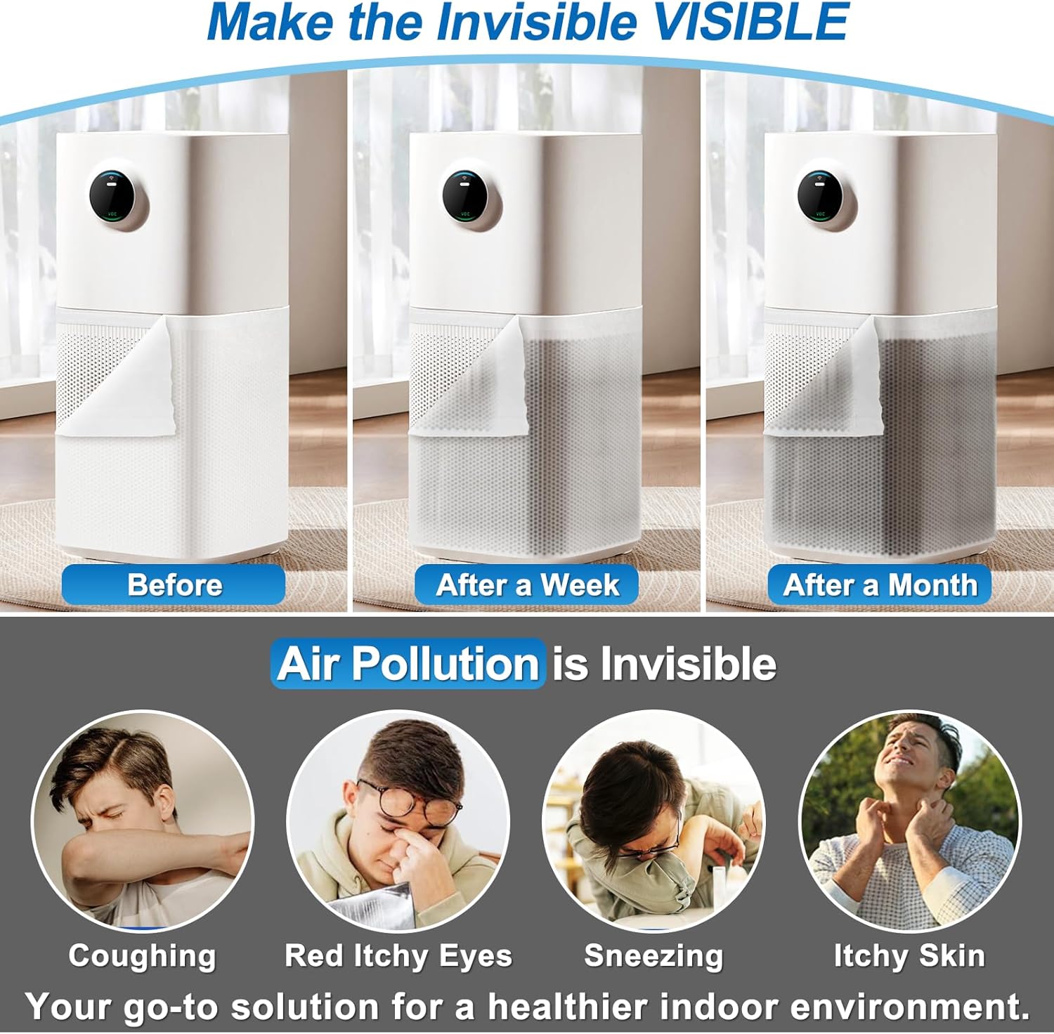 - MERV 13 Effective Filtration - 91% for 0.3µm & 99.99% for PM2.5! Just 1mm thick without blocking airflow! Our AC vent filters protect against smaller particles like pet dander and pollen, reduce the airborne particles, such as pet hairs, lint, dirt, invisible dust that may cause sneezing, coughing, and red itchy eyes. Save costs with easy replacement every 3 months for your home AC vent pre-filter.