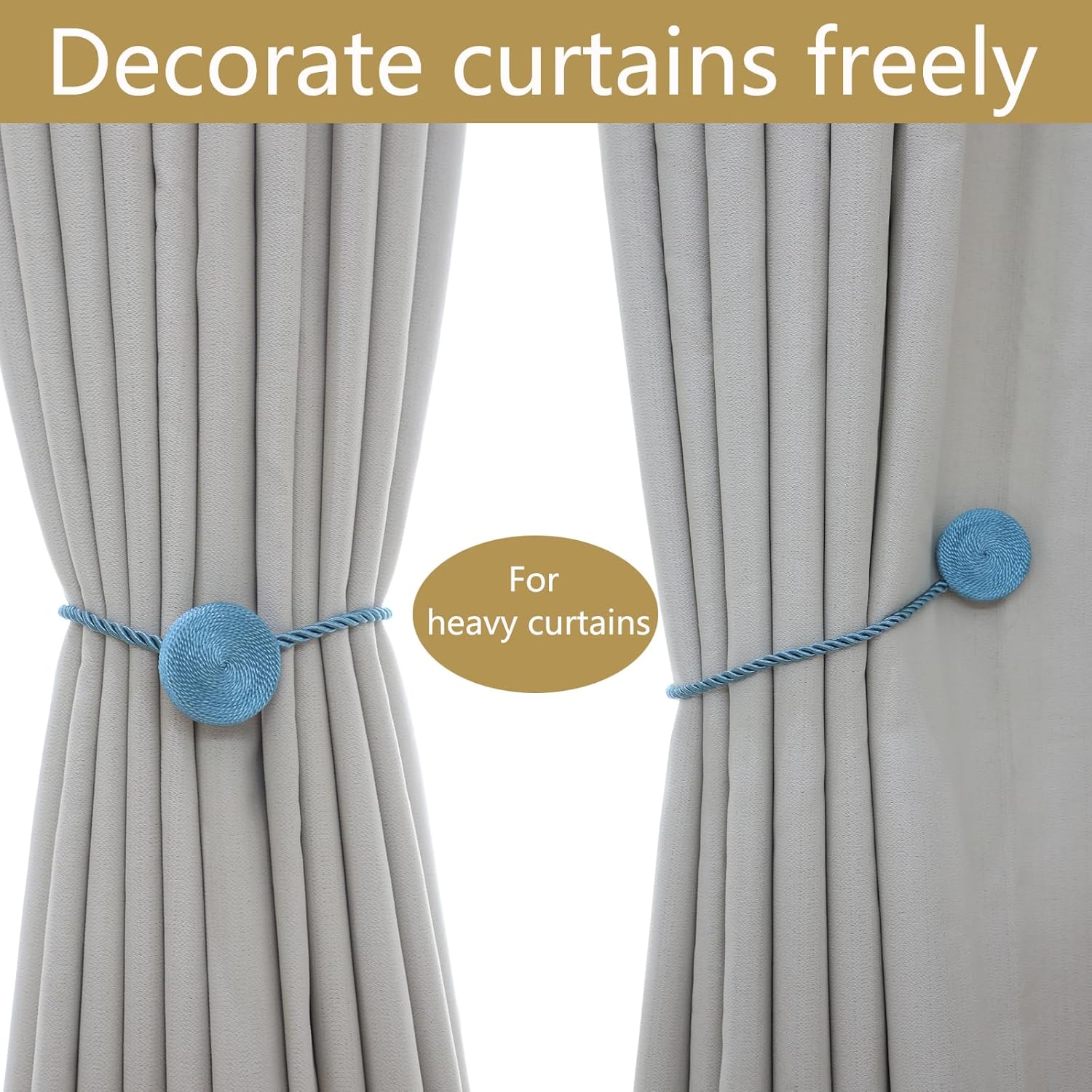 - 🎯 Versatile Styling Anywhere: Versatile for Any Room & Curtain: These magnetic curtain tiebacks perfect for thick blackout drapes or sheer curtains, used fully tied or half-tied. Perfect for living rooms, bedrooms, offices & bathrooms. European braided design blends with farmhouse, modern, or classic decor. Holds thickest curtains yet gentle on fabrics.