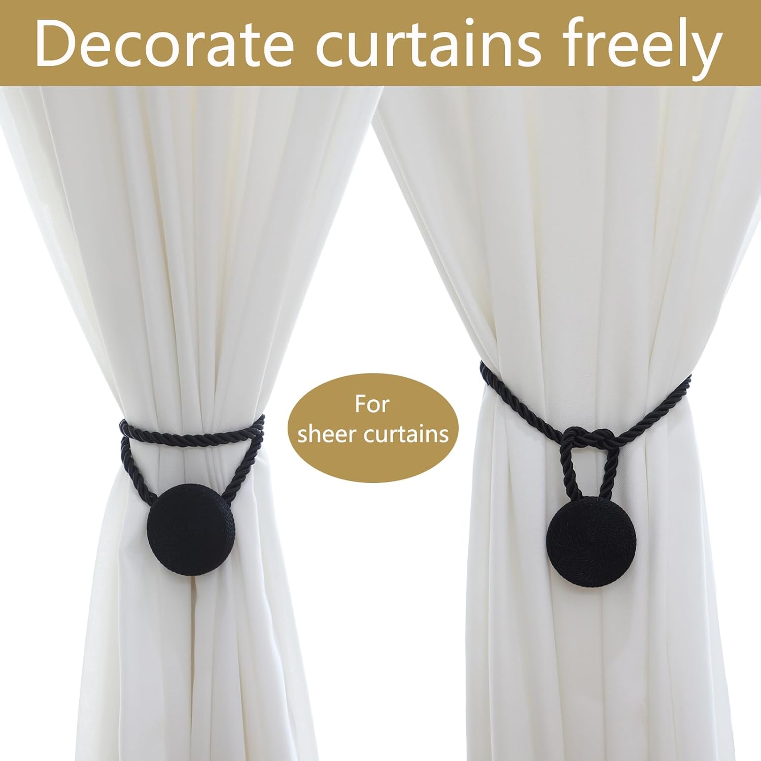 - 🎯 Versatile Styling Anywhere: Versatile for Any Room & Curtain: These magnetic curtain tiebacks perfect for thick blackout drapes or sheer curtains, used fully tied or half-tied. Perfect for living rooms, bedrooms, offices & bathrooms. European braided design blends with farmhouse, modern, or classic decor. Holds thickest curtains yet gentle on fabrics.