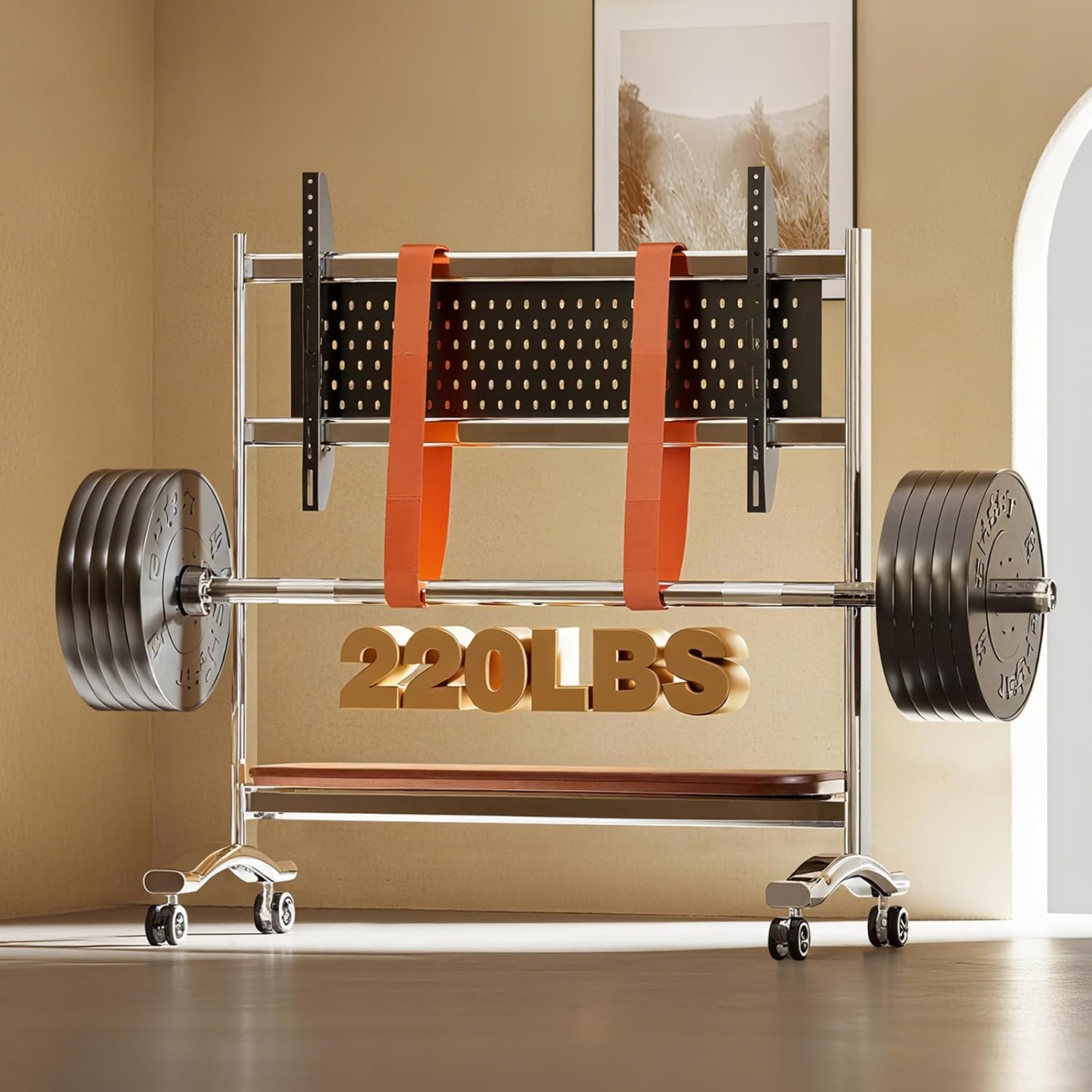 Stainless Steel Art Rolling TV Cart, Mobile TV Stand for 65-110inch TVs, Heavy Duty TV Stand with Wood Shelf&Large Storage Pegboard 220 lb. Load Capacity, Max VESA 1200x600mm (Style 1)