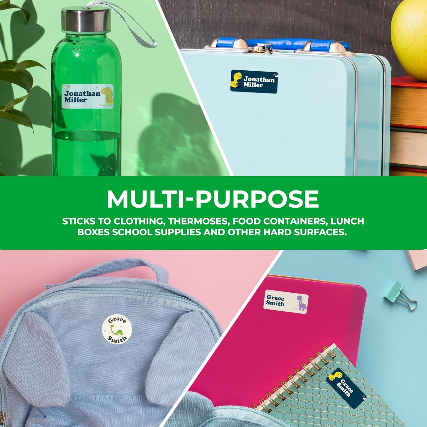 - 💧 Waterproof Stickers & Fade-Resistant — Laminated for long-lasting use, our custom stickers personalized won’t peel, fade, or rub off. Keep your kid’s name visible no matter where the day takes them. These waterproof vinyl labels stick to bottles, lunch boxes, clothing, notebooks, and more. Designed to survive dishwashers, microwaves, freezers, and even washer/dryers!