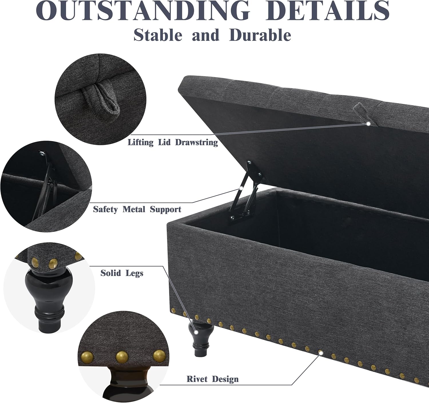 - Durable Wooden Construction: Built with a sturdy wooden frame and solid legs, this storage bench for living room supports up to 330 lbs. It stays stable without wobbling or warping, offering durability and reliable support for everyday use